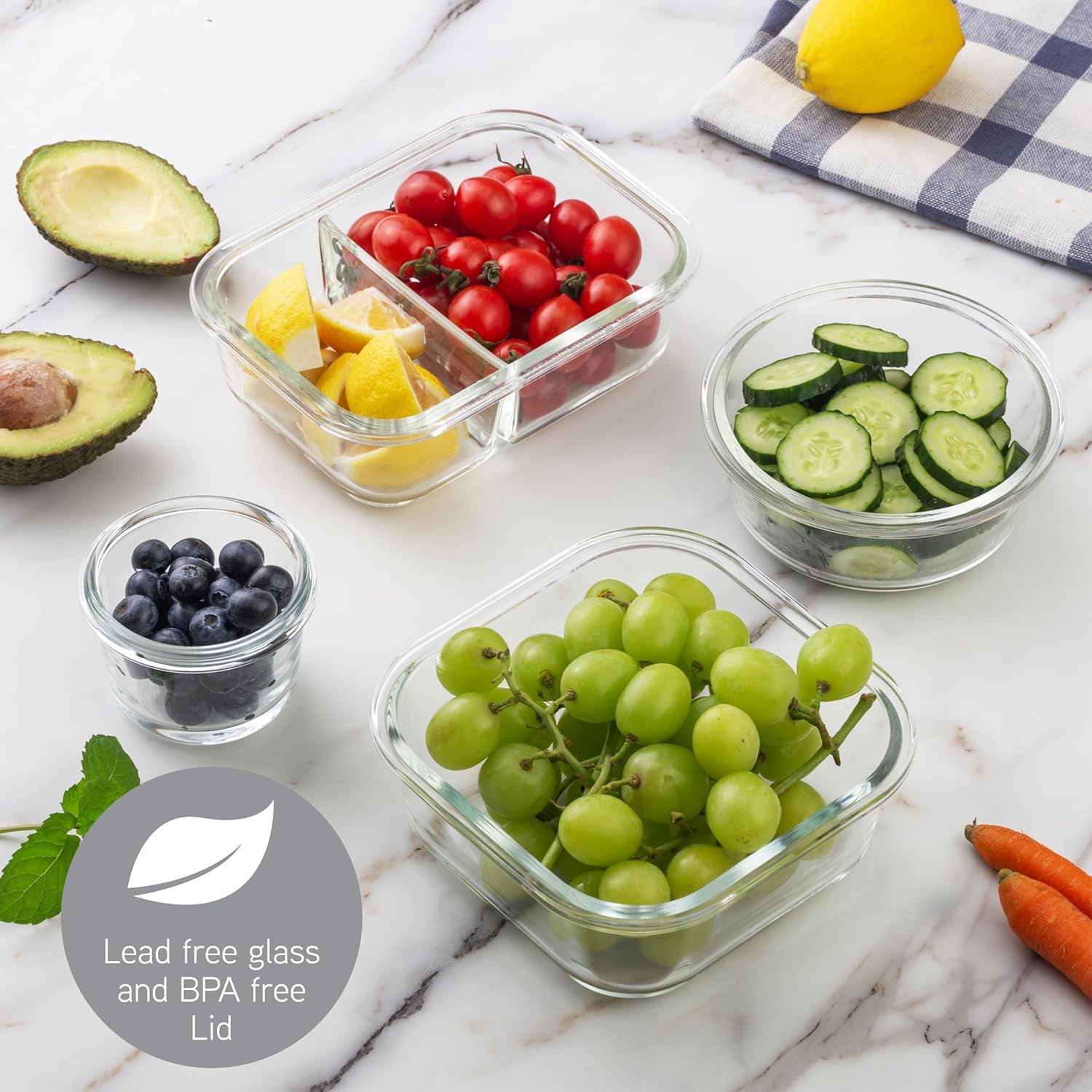- Innovative Glass Divider Design: Two of the containers feature a built-in glass divider, allowing you to keep different foods separate within the same container, making meal planning and portion control a breeze.