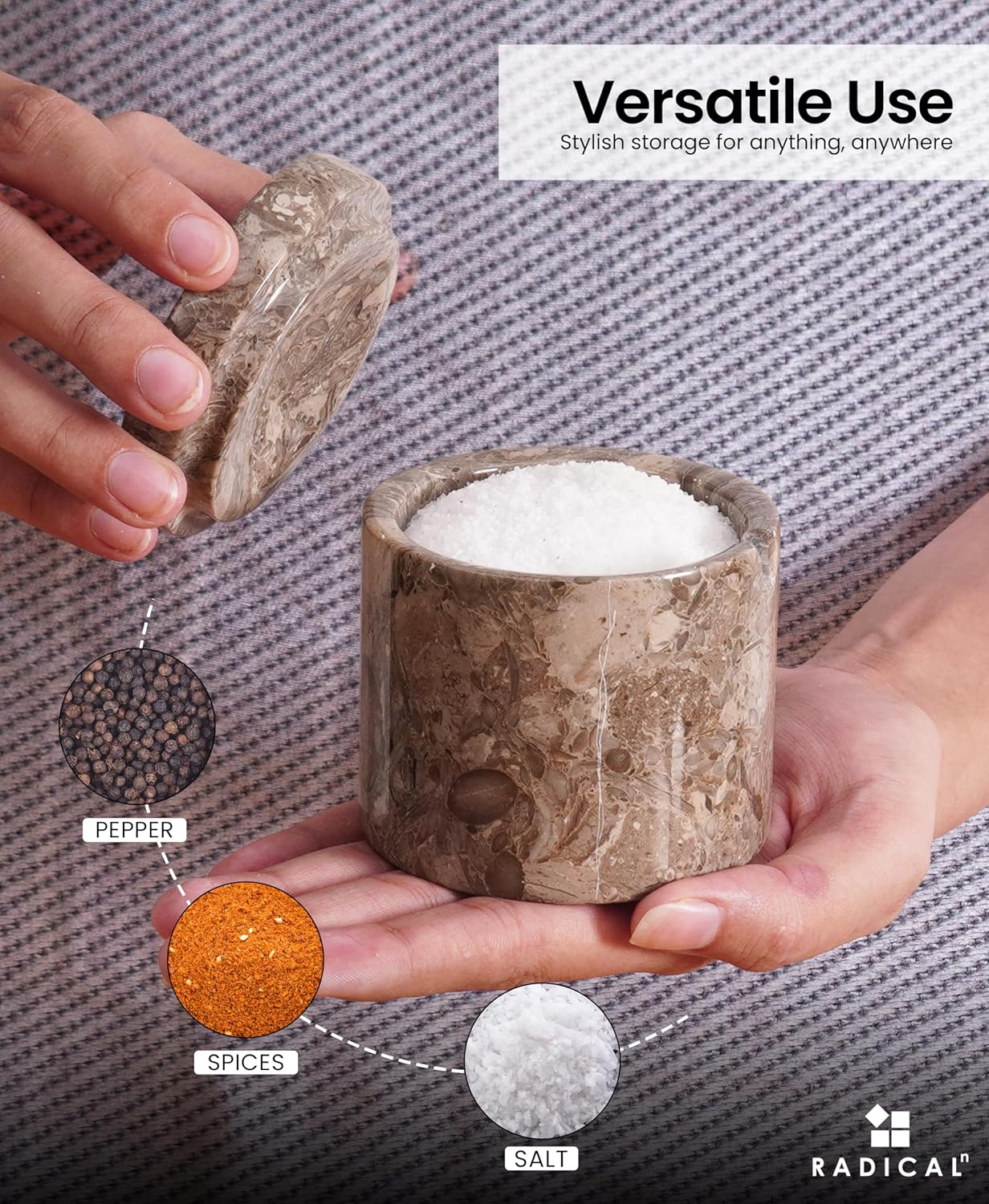 - Elegant Marble Salt Cellar with Lid & Tray - Add a touch of luxury to your kitchen with this handcrafted marble salt cellar. Complete with tray and lid, itβs perfect for holding sea salt, pink salt, or spices.