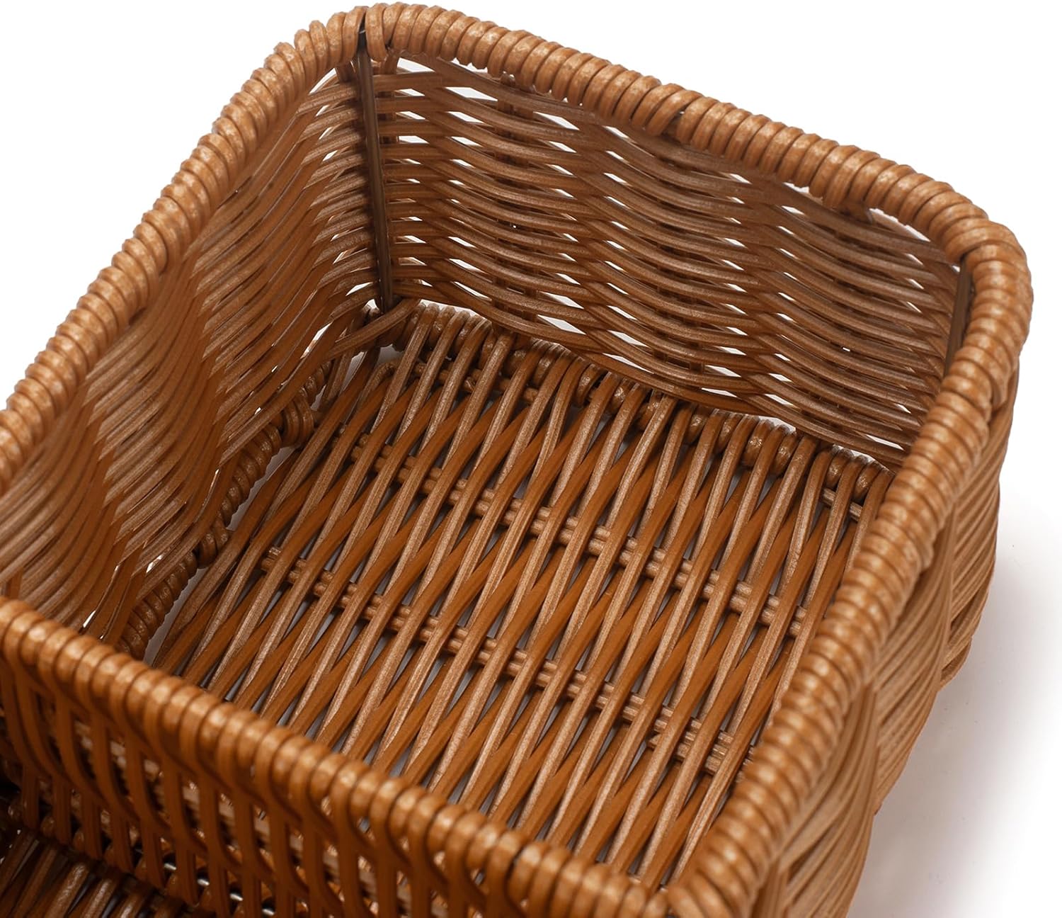 - Multi functional Basket: The wicker storage basket is suitable to storage toilet paper rolls (large size basket is suitable, small size is not suitable), remote control, keys, perfumes, small plant pot, lotion bottles and other small items. Please note the small size of the wicker basket is not suitable for toilet paper rolls.