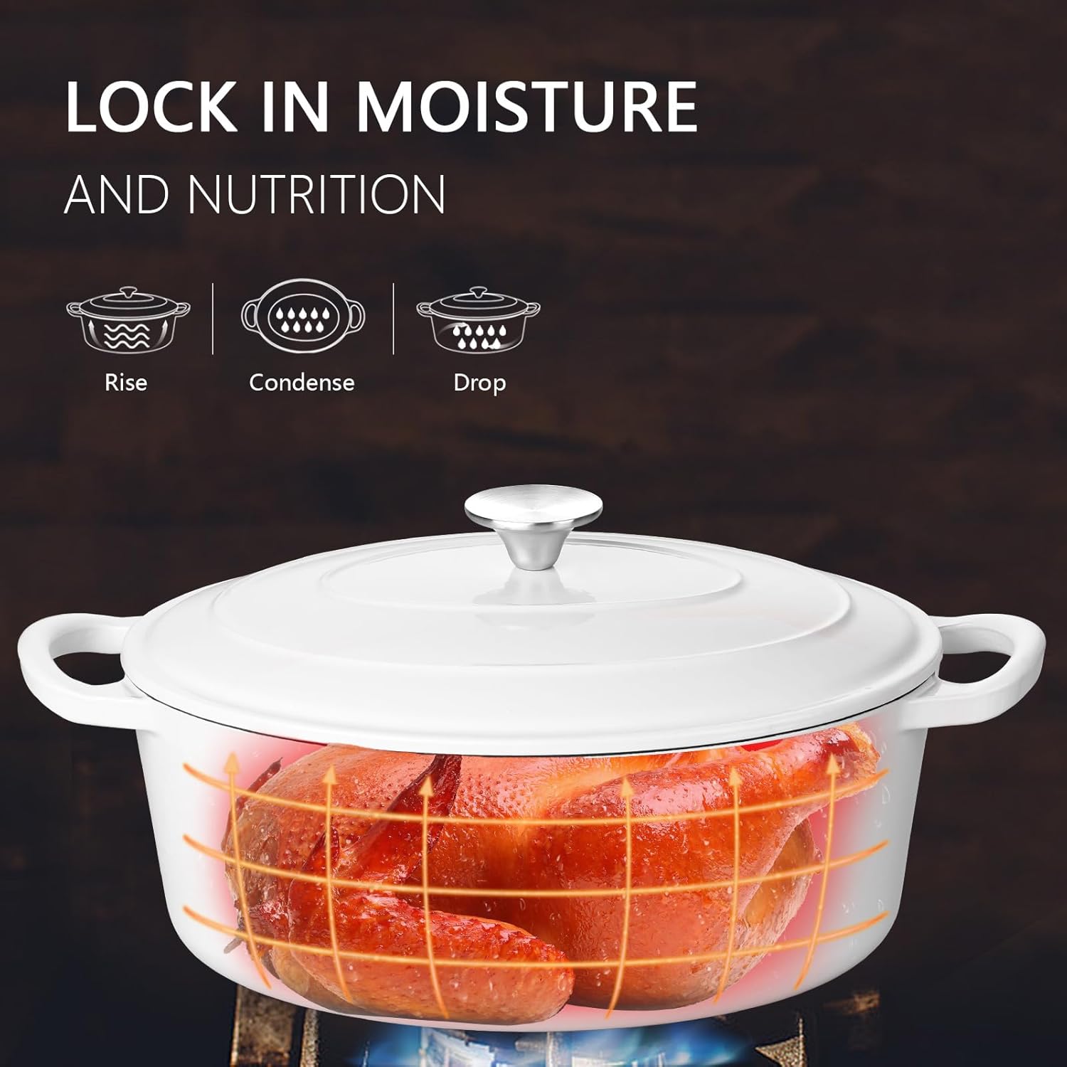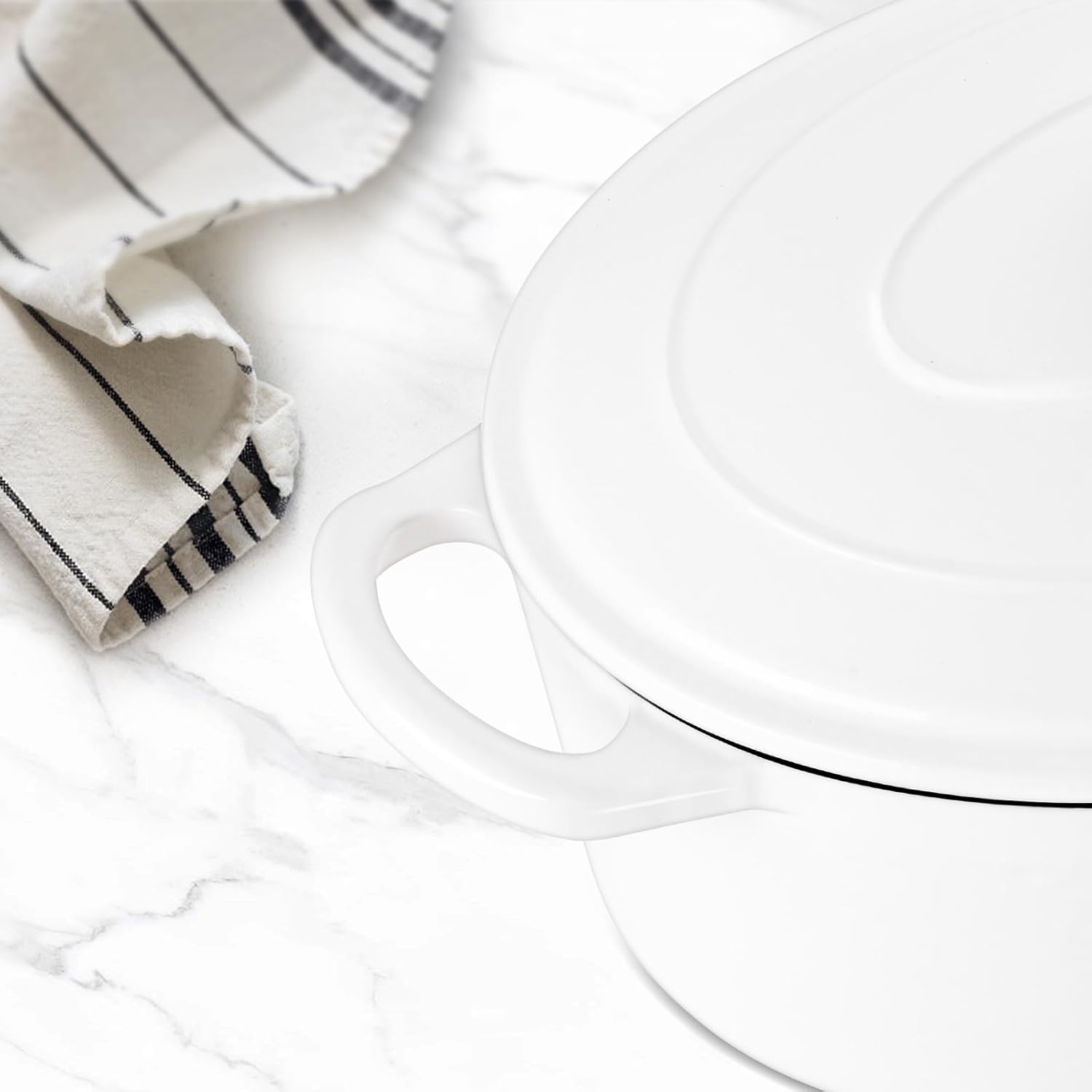 7 Quart Oval Dutch Oven with Lid, Leonyo 7QT Enameled Oval Cast Iron Dutch Oven for Sourdough Bread Breaking, Heavy Duty Cookware for Braising, Stews, Roasting, White