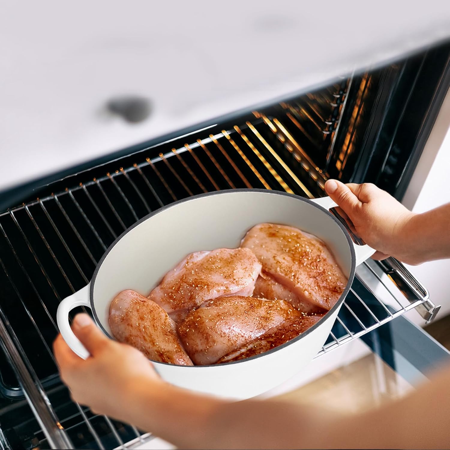- Superior Heat Retention, our Dutch oven for bread baking ensure even heat distribution and retention, evenly heating throughout both the bottom and sidewalls, oval Dutch oven also reduces the amount of energy needed for cooking, ensuring perfect roasts, stews and baked bread every time. Oven Safe up to 500β