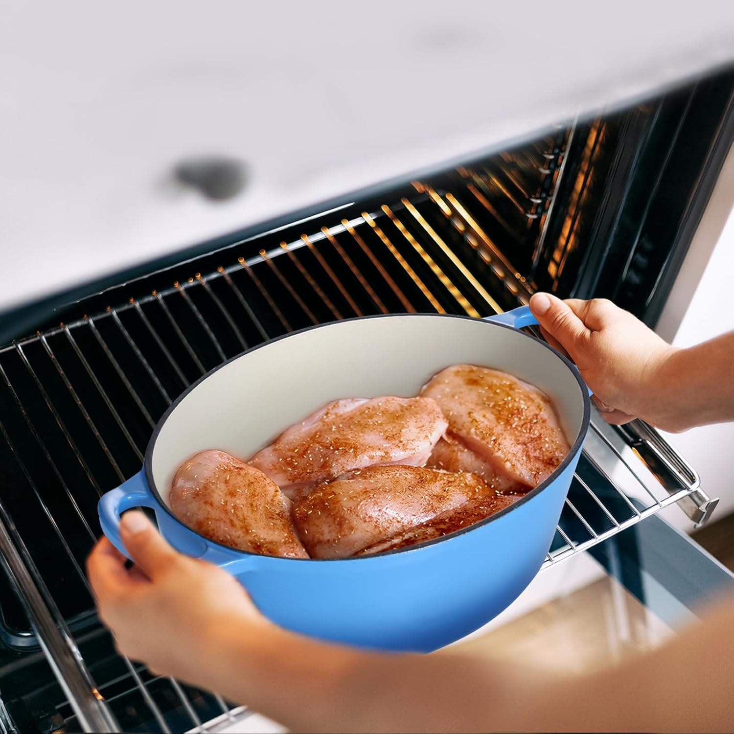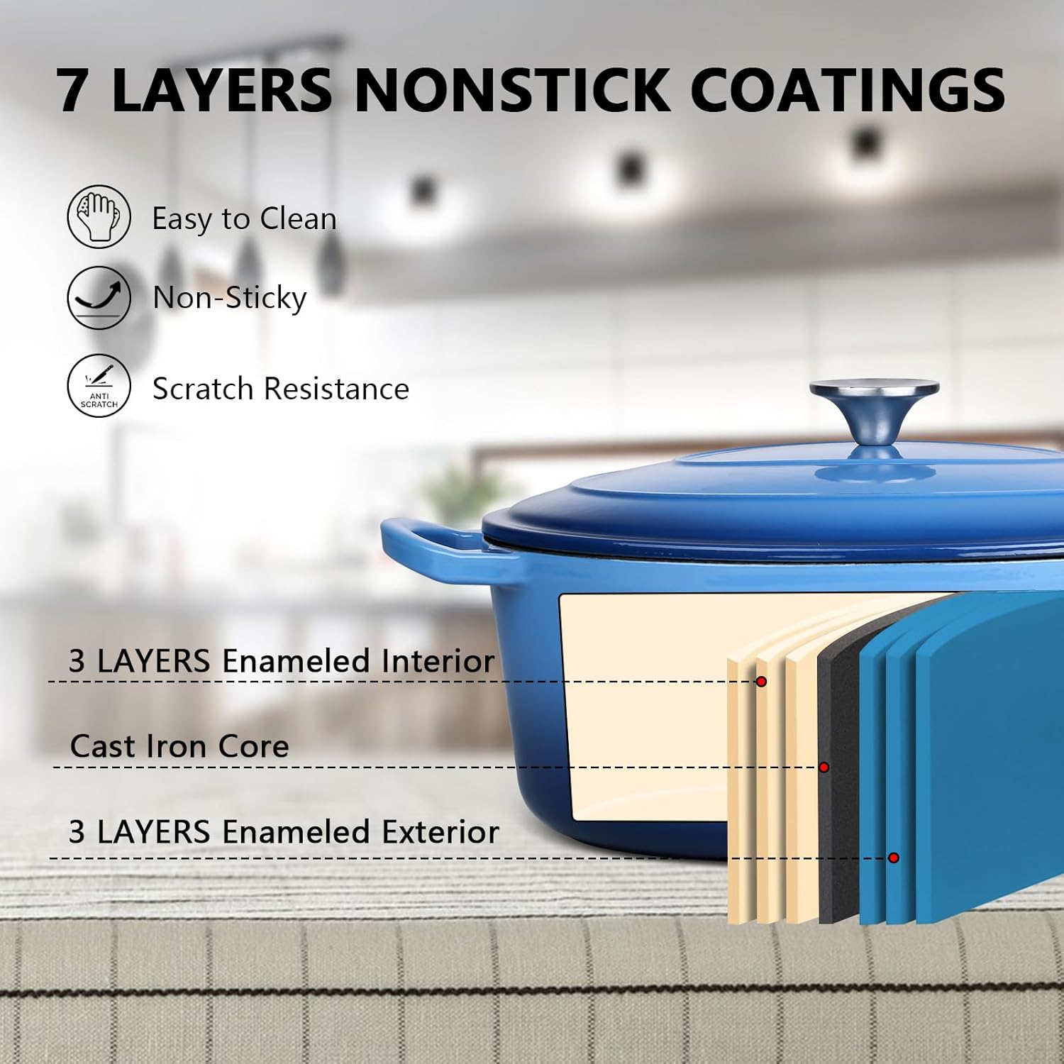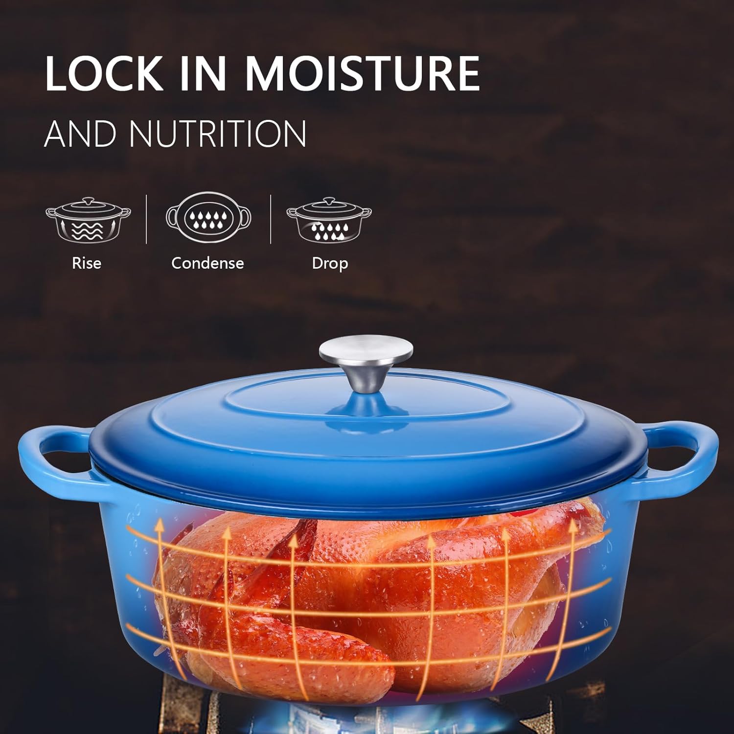 7 Quart Oval Dutch Oven with Lid, Leonyo 7QT Enameled Oval Cast Iron Dutch Oven for Sourdough Bread Breaking, Heavy Duty Cookware for Braising, Stews, Roasting, Blue