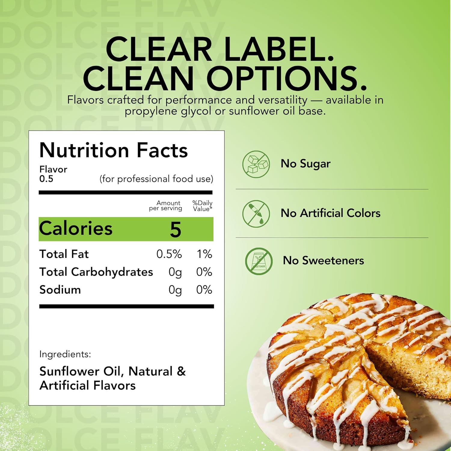 Dolce Flav Apple Extract – 2 Ounce Oil-Soluble Kosher, Sugar-Free, Concentrated Crisp Apple Flavoring for Baking, Chocolates & Desserts, Includes Measured Dropper