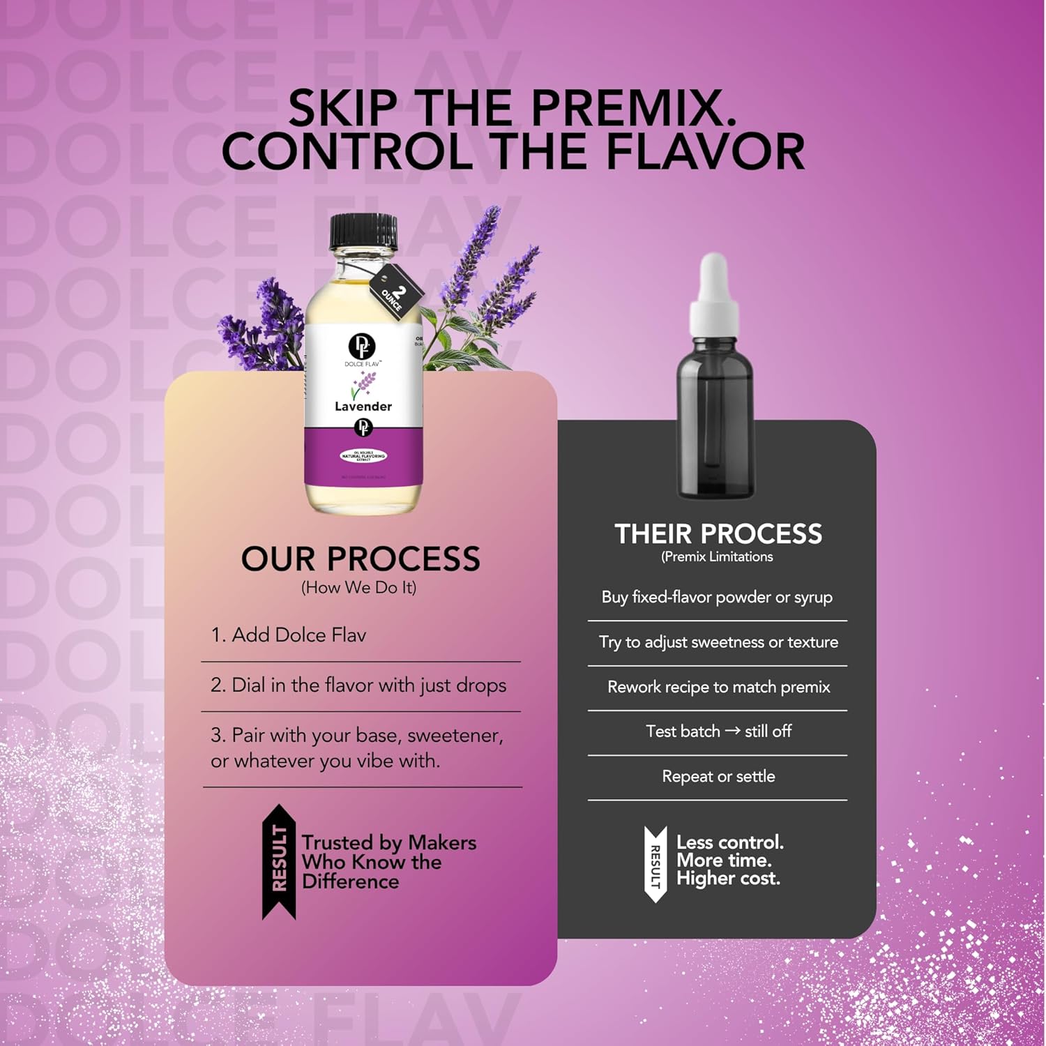 Dolce Flav Natural Lavender Extract – 2 Ounce Oil-Soluble Kosher, Sugar-Free, Concentrated Floral Lavender Flavoring for Baking, Chocolates & Desserts, Includes Measured Dropper