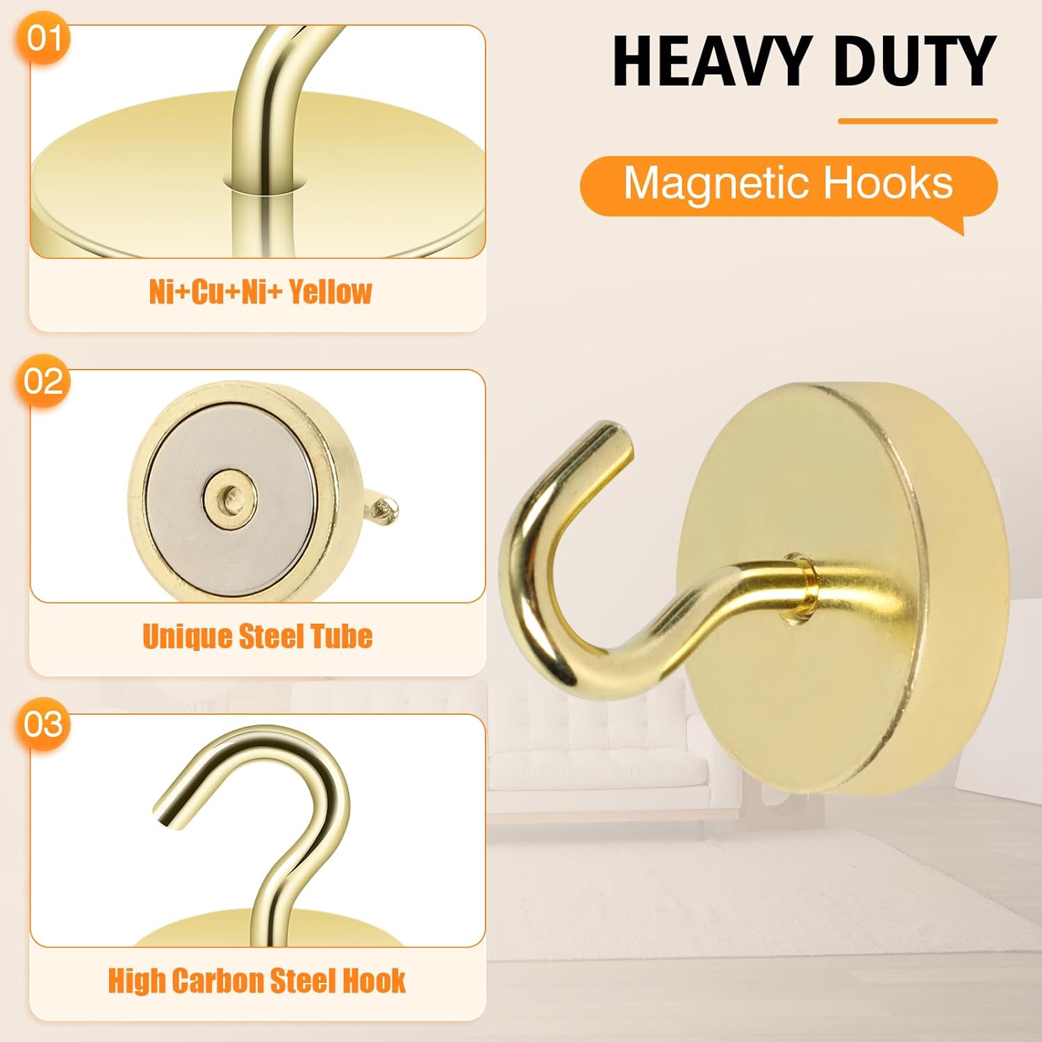 Neosmuk Magnetic Hooks, Cruise Ship Essentials, 80lb+ Heavy Duty Magnetic Hooks for Cruise Cabins, Refrigerator, Grill, Hanging, and Travel | Extra Strong Must-Haves Magnet Hook,Gold