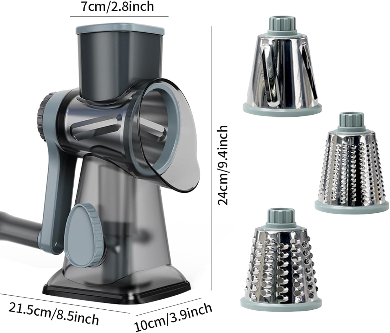 - 【Versatile Grating Options】: Cheese grater features a rotary design that allows you to shred, grate and slice cheese, vegetables, and fruits with ease. this rotary cheese grater, with its ergonomic handle, is built to withstand frequent use and last a long time. The cheese shredder rotary is highly efficient and easy to use. With the cheese grater with handle, you will have a reliable kitchen tool for all your grating and shredding needs