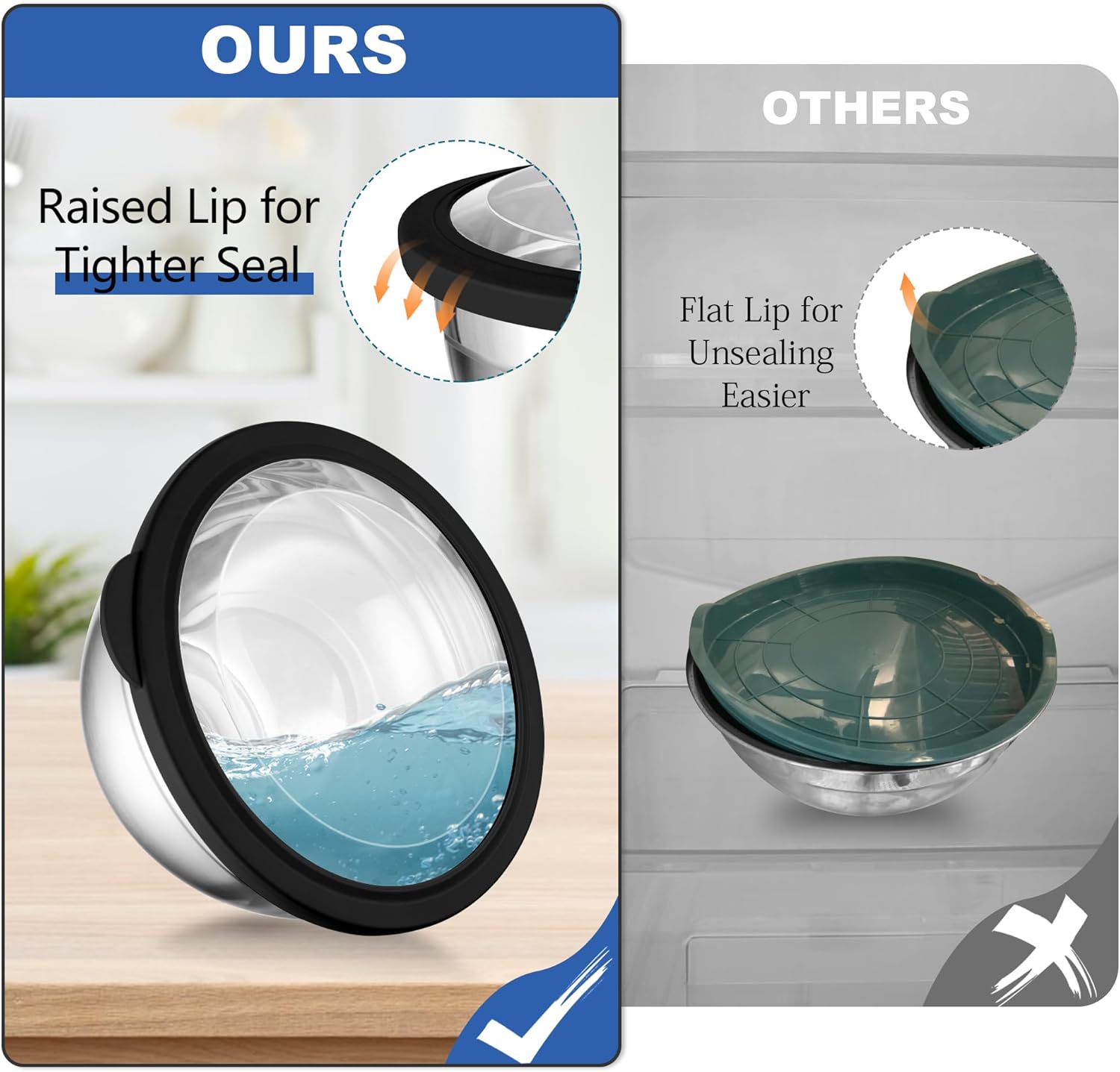 - PRACTICAL LIDS: These airtight lids with raised lip for sealing tightly, Helping keep the food fresh in the refrigerator for longer time and leak-proof, The lids with transparent design allow you to see the food inside the bowls and no need to open, Convenient for checking whatβs stored, Arched design on one sides of the lid for easy opening and closing