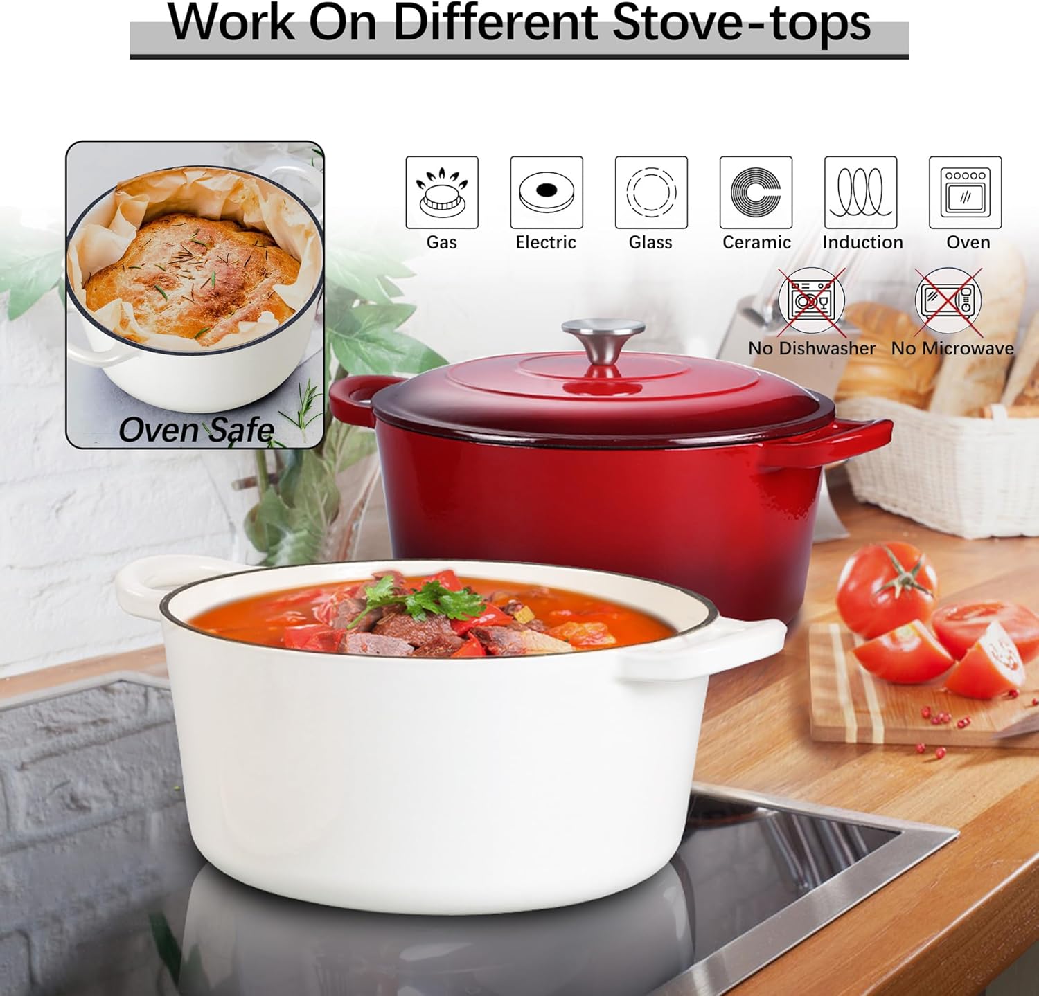 - FOR DIFFERENT COOKTOPS & KITCHENS: Our enameled cast iron vessel is suitable for various cooking stove tops including gas, electric, glass, ceramic, induction, halogen and safe for oven cooking, You can use the dutch oven pot for outdoor BBQ grilling campfire, Convenient to cook anytime at any places, Itβs also a good choice to be a gift to your friends for housewarming even not clear the stove-top types of their home, There is three colors for your selection to match with different kitchen decoration, Add your kitchen a dash of color