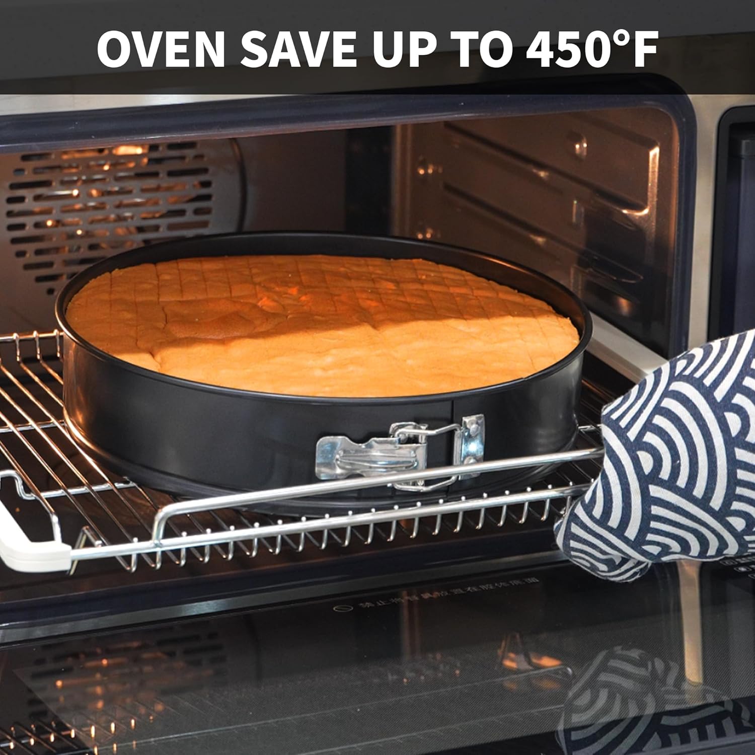 - Removable Bottom: The circular springform cake pan features a spring latch design that allows for easy and smooth release. The removable honeycomb texture base ensures even heating while helping you easily take out the cake after baking is complete