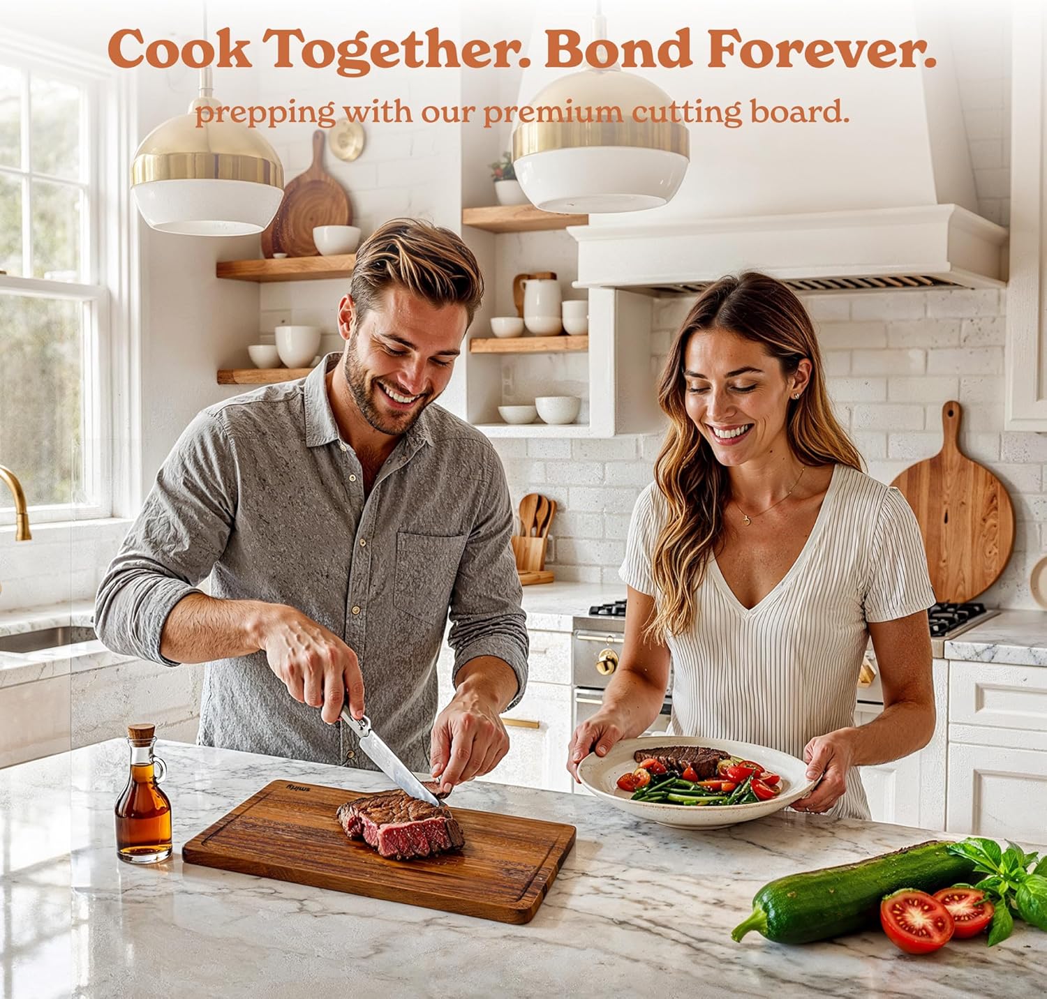- Less Work and No Worries - Juice grooves on our wood cutting board catch excess liquid, protecting your counters. Ergonomic handles make it easy to grip, while v cutting boards for kitchen resist nicks, ensuring superior sanitation and easy cleaning.