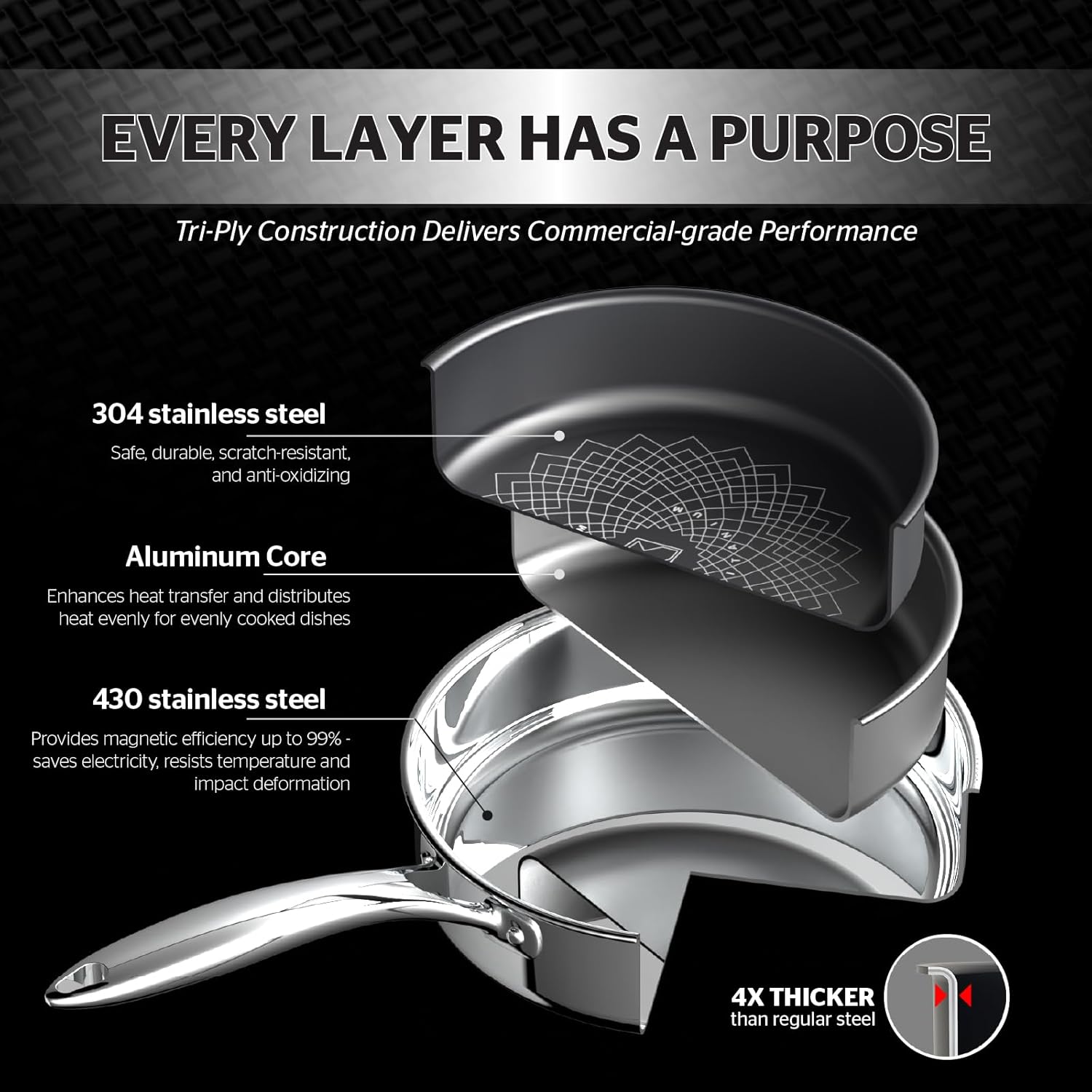 - CONSTRUCTION: Premium stainless steel construction ensures excellent heat distribution and durability for long-lasting performance
