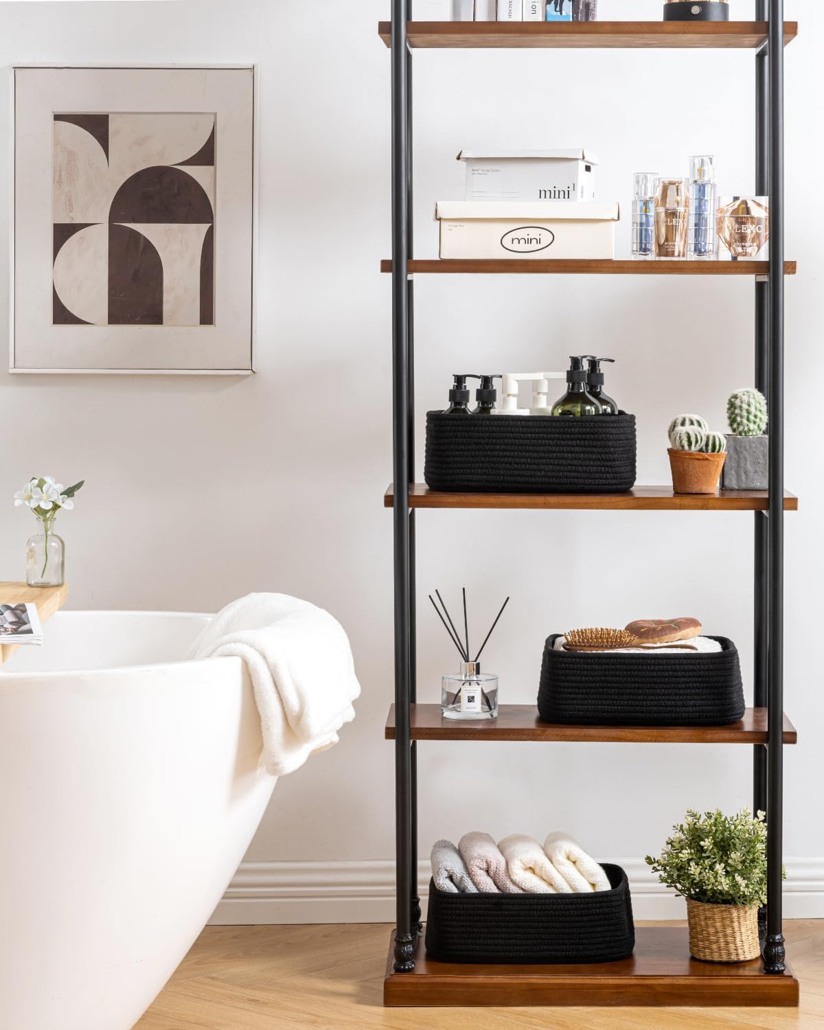 - [ Elegantly Designed to Match Any Dรฉcor ] Our small rope basket creates a minimalist appearance, and it adds a touch of warmth and texture to any room. The classic solid color design ensures seamless integration with your existing aesthetics, complementing any decoration. Perfect as decorative storage baskets for shelves, cabinets, and any open display space, making them a stylish and practical addition to any decor, enhancing the overall aesthetics of your room