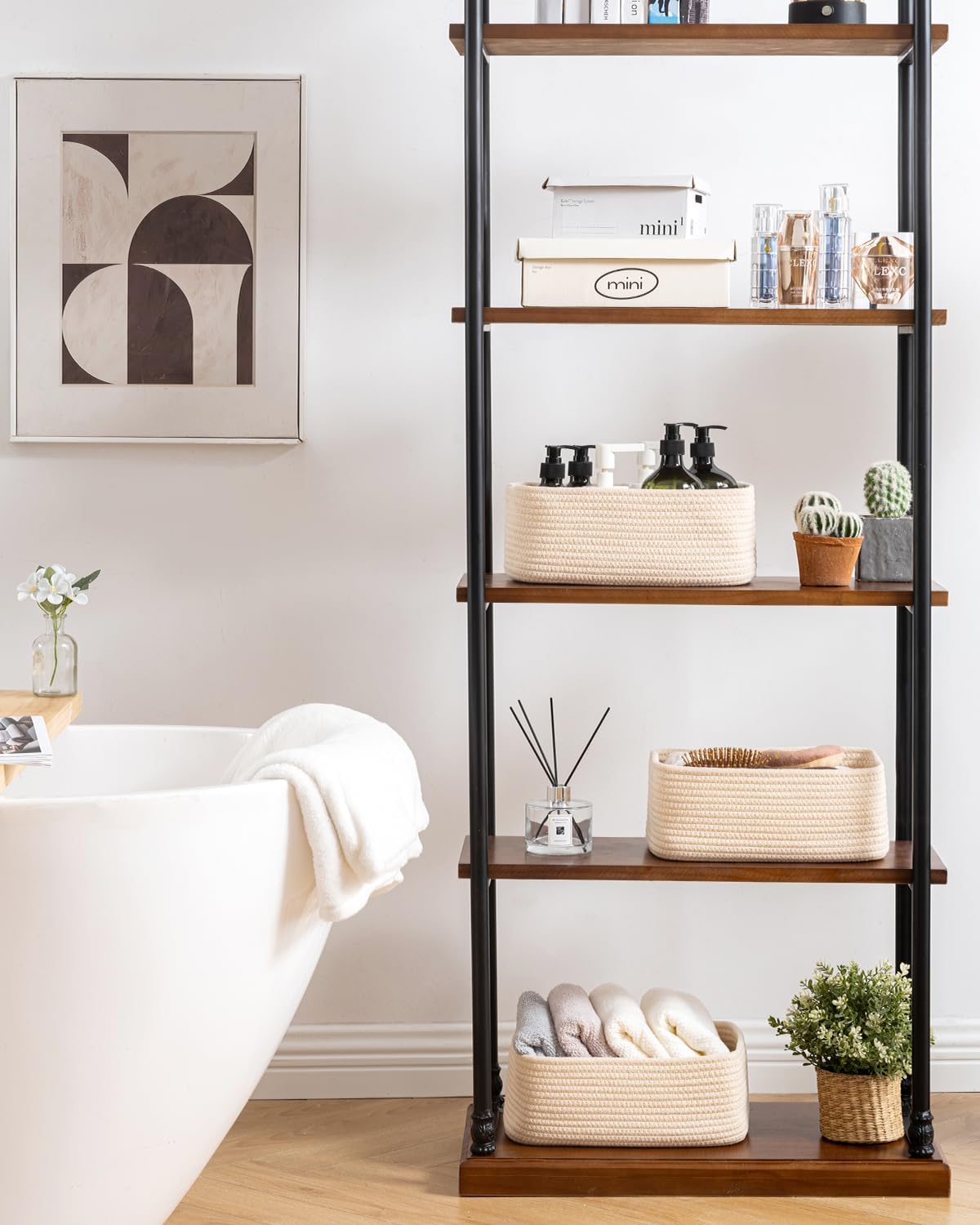 - [ Elegantly Designed to Match Any Dรฉcor ] Our small rope basket creates a minimalist appearance, and it adds a touch of warmth and texture to any room. The classic solid color design ensures seamless integration with your existing aesthetics, complementing any decoration. Perfect as decorative storage baskets for shelves, cabinets, and any open display space, making them a stylish and practical addition to any decor, enhancing the overall aesthetics of your room