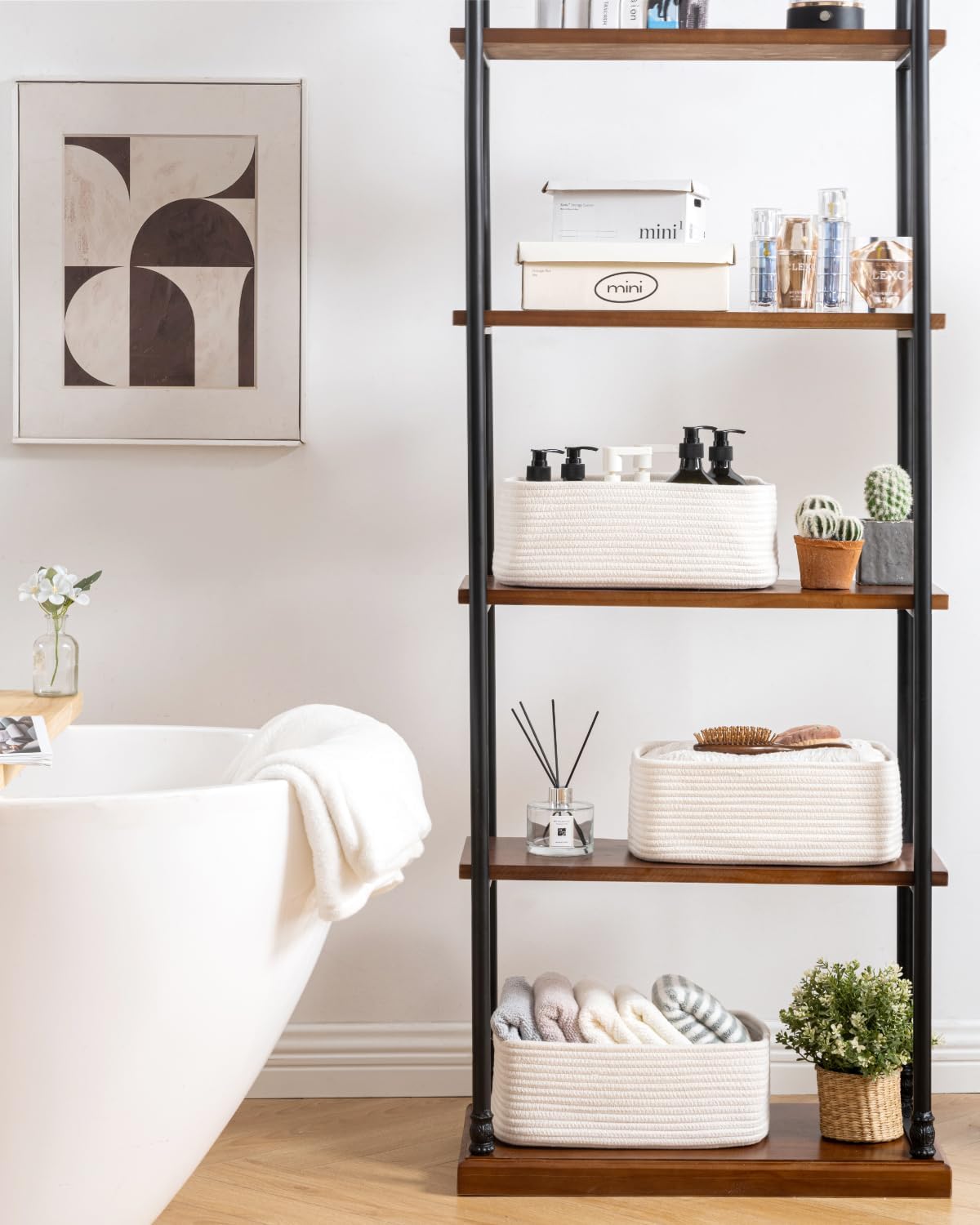 - [ Elegantly Designed to Match Any Dรฉcor ] Our small rope basket creates a minimalist appearance, and it adds a touch of warmth and texture to any room. The classic solid color design ensures seamless integration with your existing aesthetics, complementing any decoration. Perfect as decorative storage baskets for shelves, cabinets, and any open display space, making them a stylish and practical addition to any decor, enhancing the overall aesthetics of your room