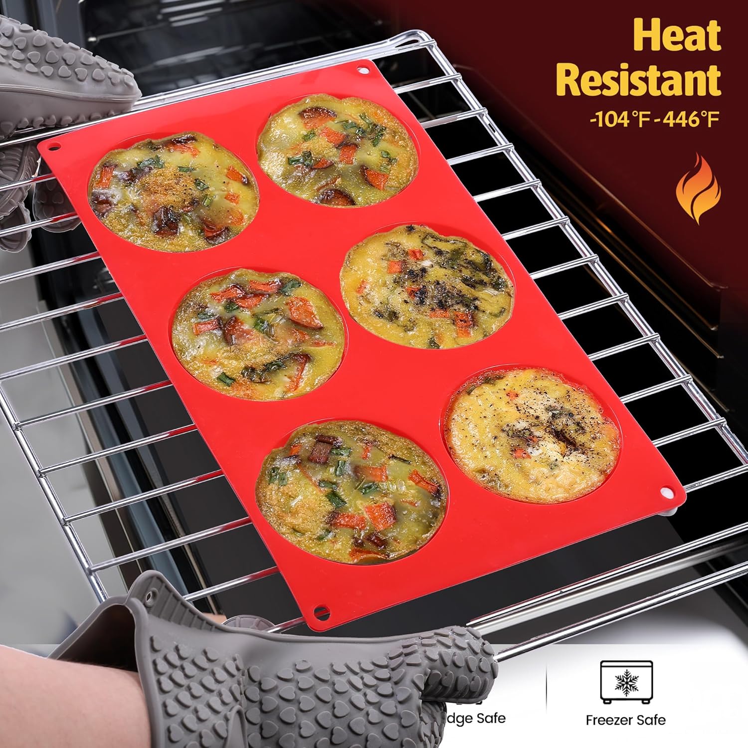 - No Stick: This round egg mold offers easy release of baked goods without sticking. A simple press from the bottom releases eggs smoothly. Silicone muffin top pan flexible design facilitates thorough cleaning