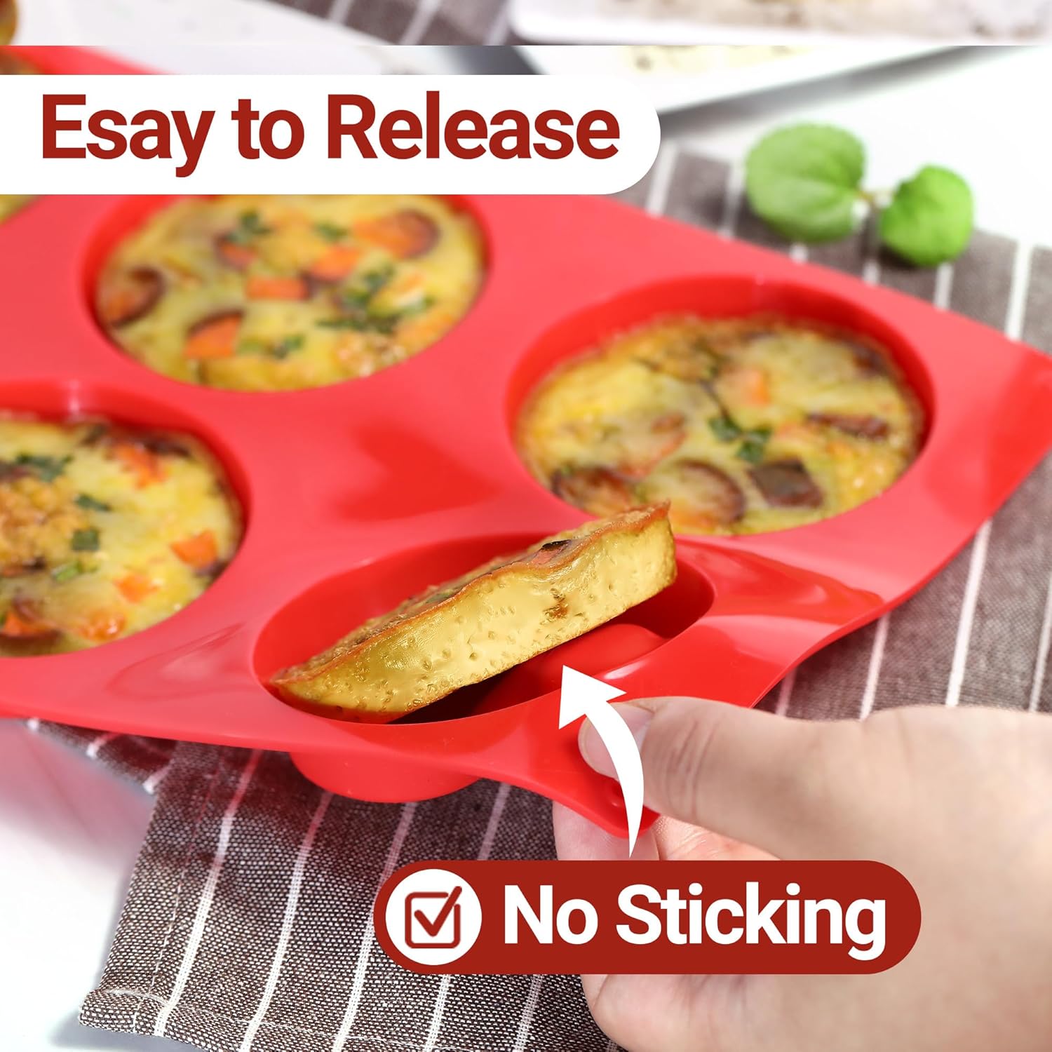 - No Stick: This round egg mold offers easy release of baked goods without sticking. A simple press from the bottom releases eggs smoothly. Silicone muffin top pan flexible design facilitates thorough cleaning