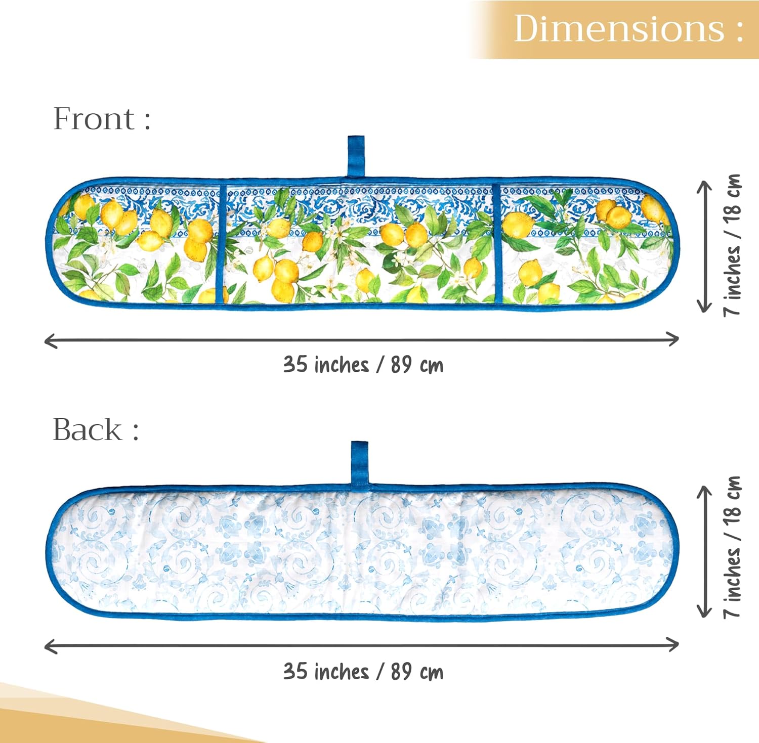 - Package includes: Includes 1 double oven mitt sized 7"x35". Perfect for handling hot cookware safely while adding a touch of European elegance to your kitchen. Designed in Europe and made in India with care