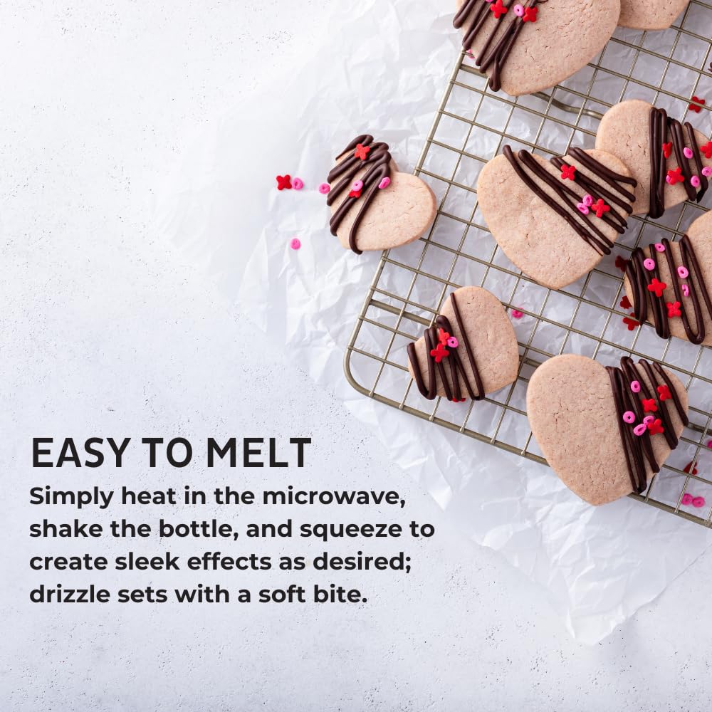 - EASY TO MELT: Simply heat in the microwave, cool slightly, shake bottle and squeeze to create sleek effects as desired; drizzle sets with a soft bite; this 10 oz bottle will coat the top and drip the sides of one 8β cake