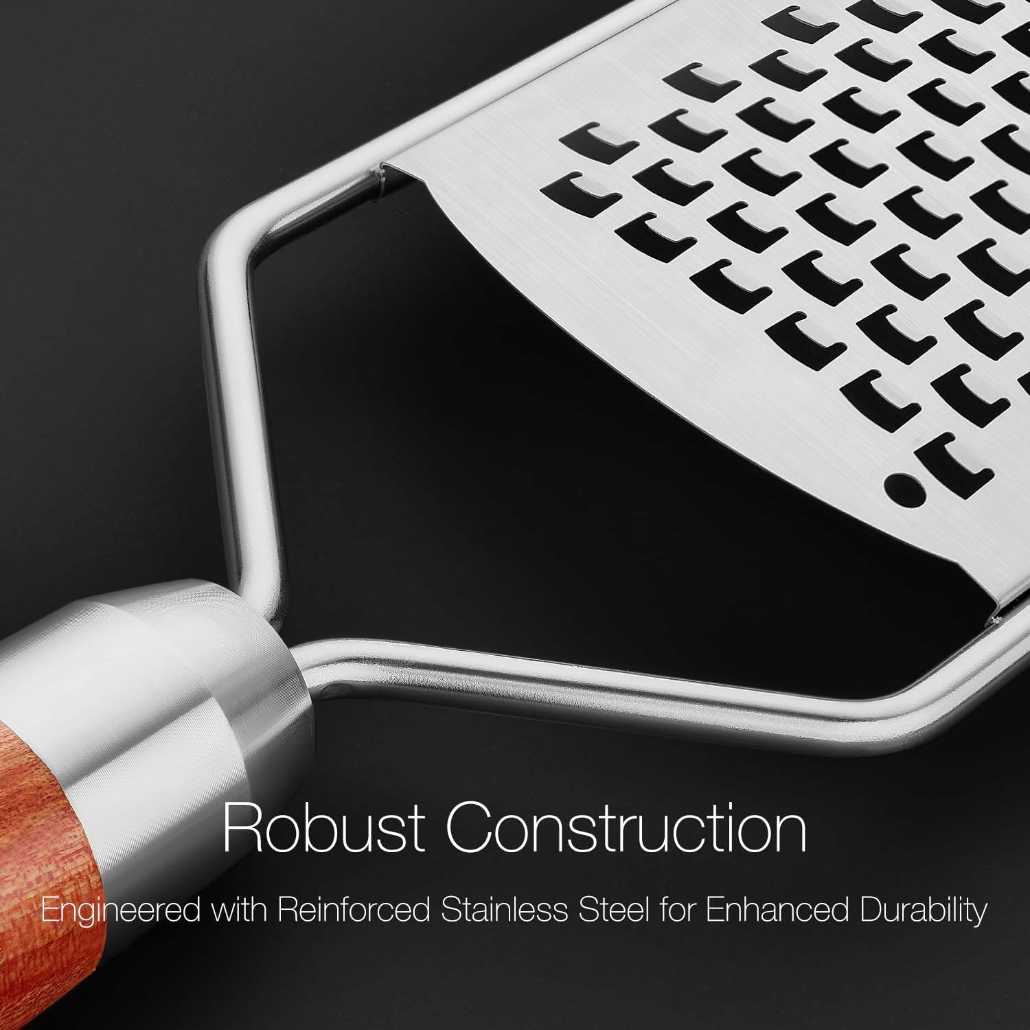 - Comfortable Solid Wood Handle: The elegant solid wood handle provides a comfortable and secure grip, allowing you to zest and grate with precision and control without slipping.