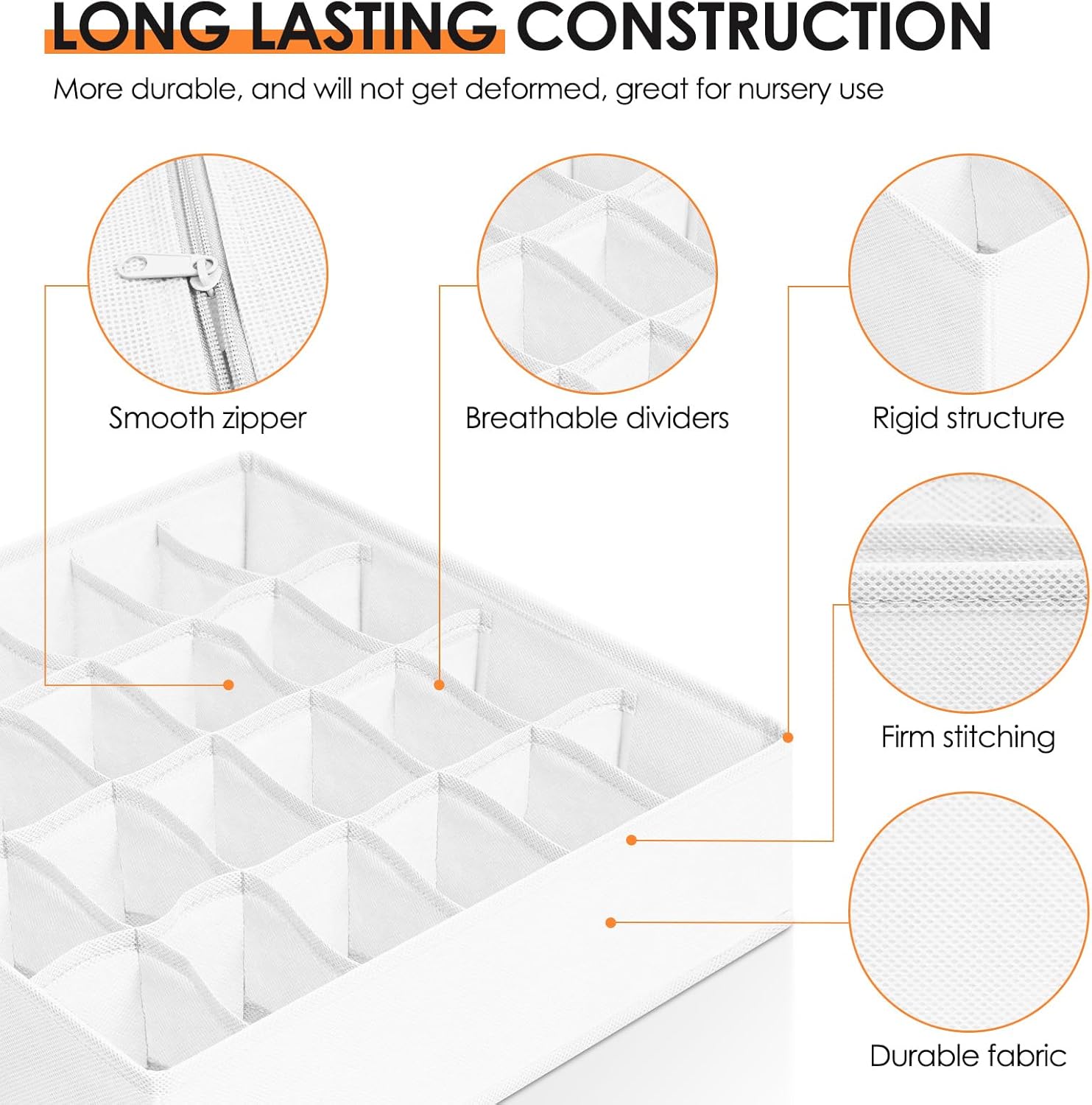 - 【QUALITY STRUCTURE】These dresser drawer organizers feature robust non-woven fabric and expert stitching for extra durability. Enhanced with sturdy boards on the sides and bottom, these organizer bins stay rigid for years. Odorless and perfect for nursery baby clothes storage.