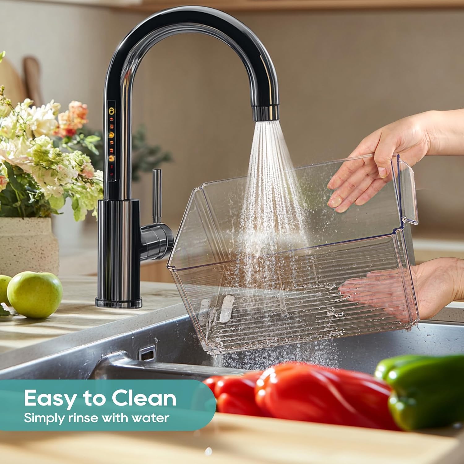 - Notice Tips: NOT DISHWASHER SAFE, DO NOT MICROWAVE & OVEN! Simply wash with soap and water to keep your fridge organizer sparkling clean with ease