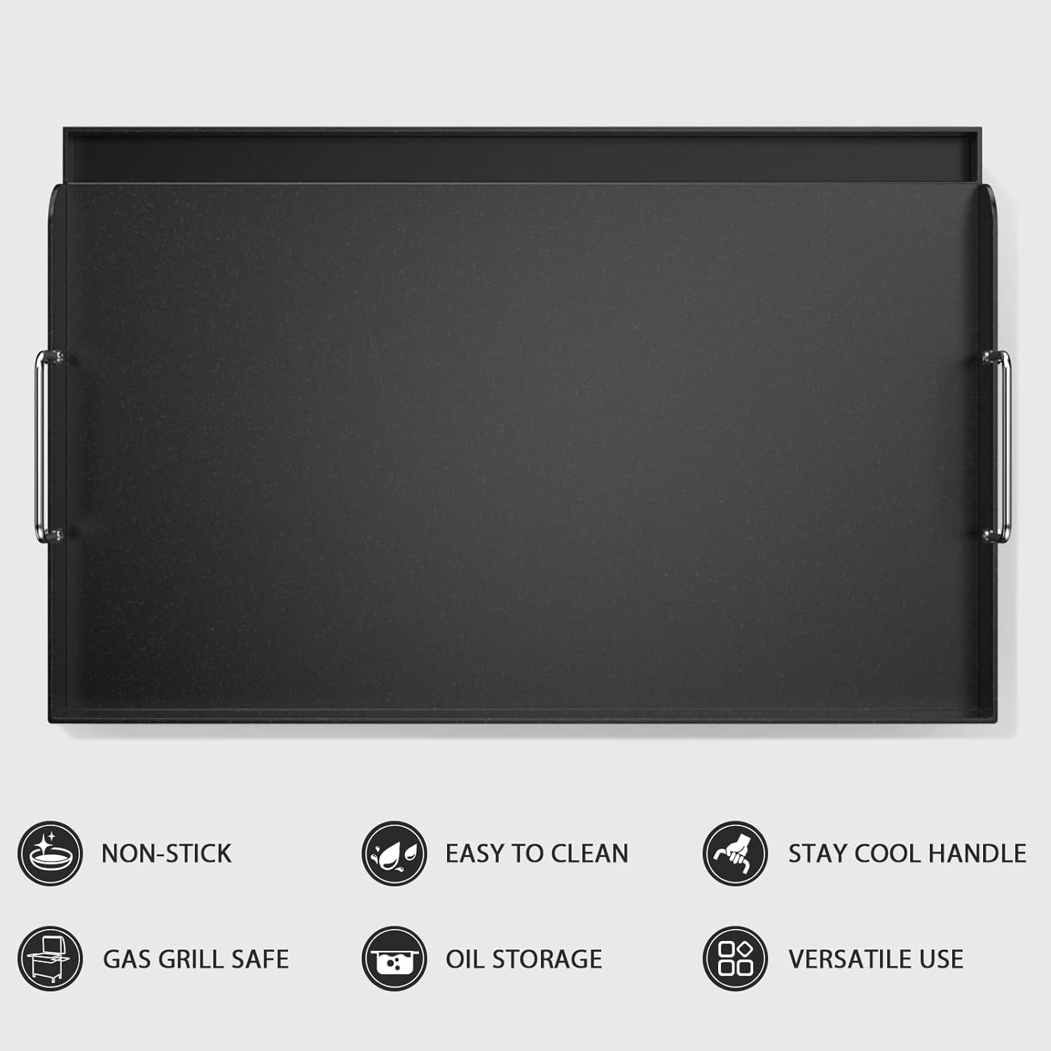 - Versatile Cooking for Every Meal: Turn your grill into a professional-grade outdoor kitchen with this nano-ceramic griddle. From fluffy pancakes to sizzling steaks, it’s perfect for breakfast, lunch, and dinner. Grill bacon, eggs, burgers, seafood, veggies, and more with ease—your culinary creativity has no limits.
