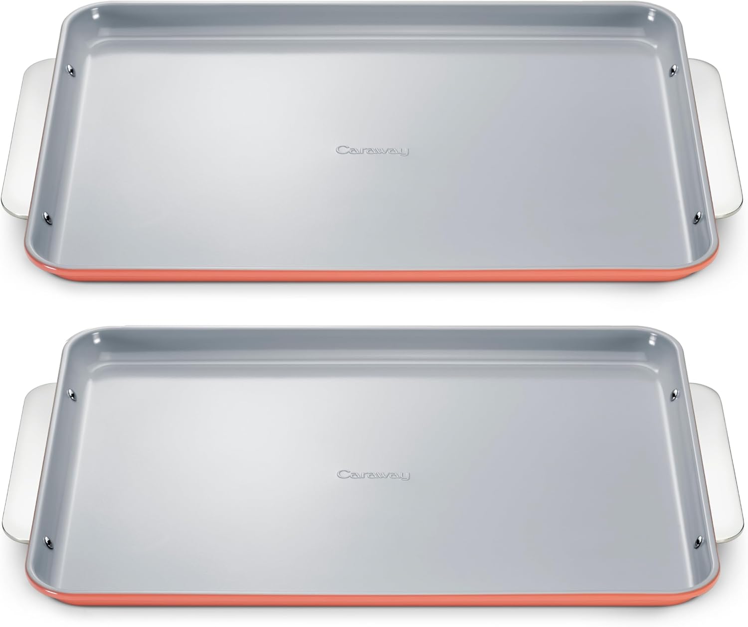 Caraway Non-Stick Ceramic Large Baking Sheet Duo - Naturally Slick Ceramic Coating - Non-Toxic, PTFE & PFOA Free - Perfect for Baking, Roasting, and More - Large (18" x 13") - Perracotta