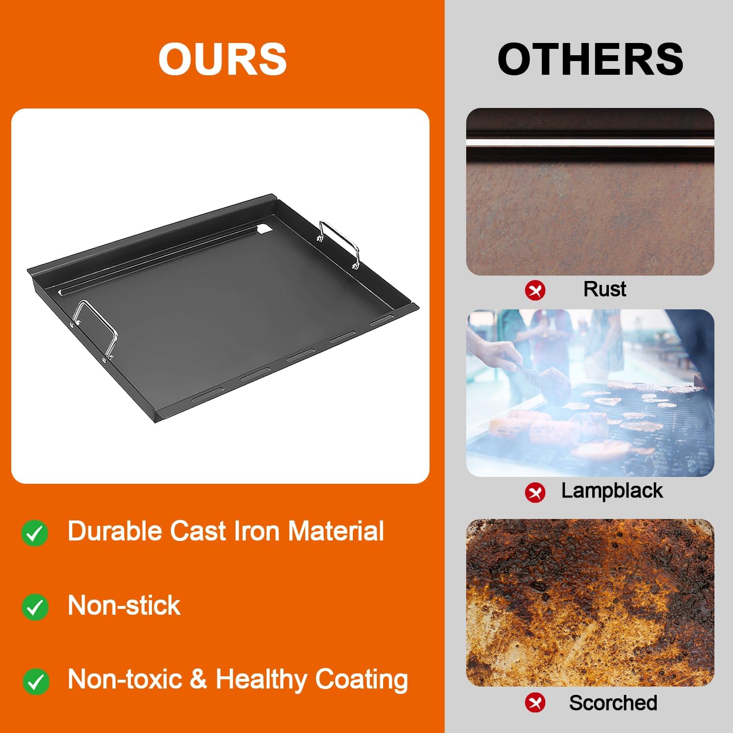 - 【Package Contents】The set includes 1 flat-top grill griddle and 2 silicone anti-scald gloves. The cooking griddle measures 25.6"x 17"(Please confirm the size of your original ones to ensure compatibility before ordering.)