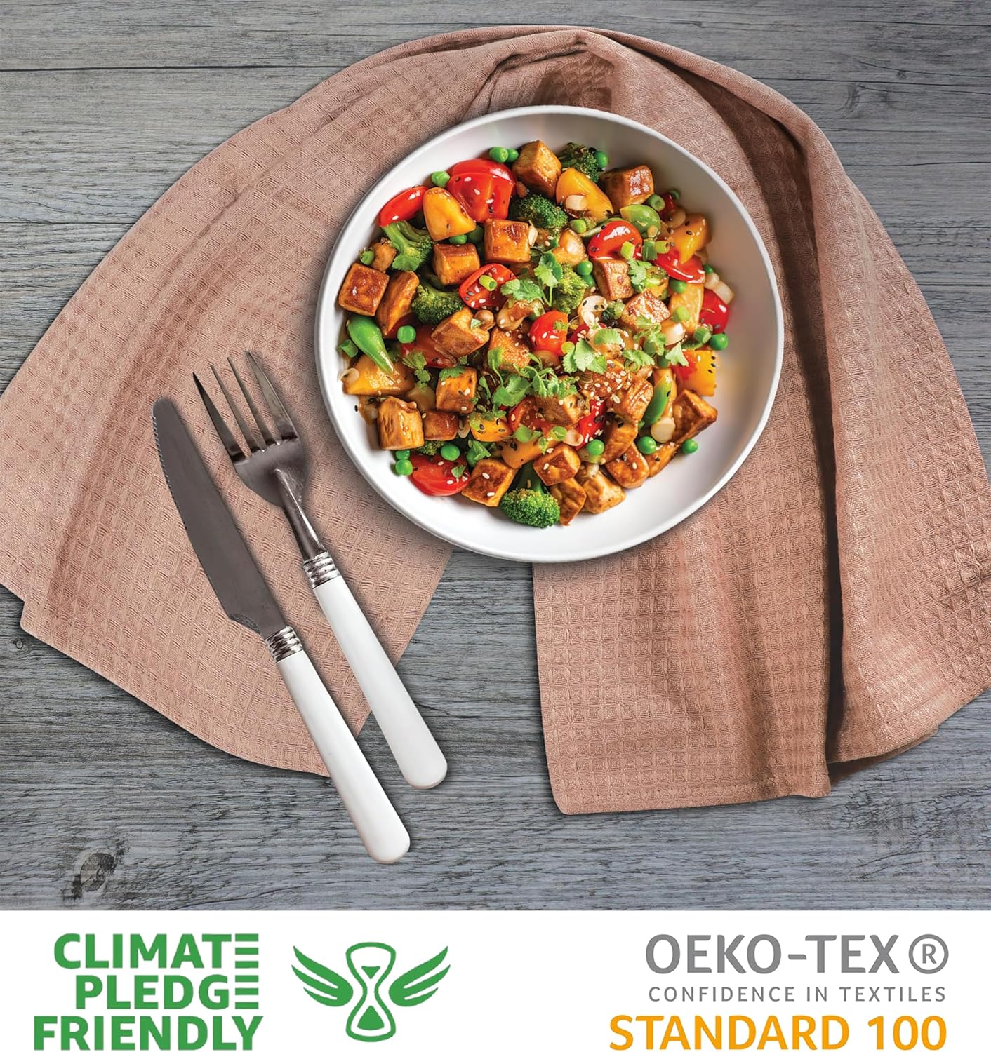 Urban Villa Waffle Dish Towels - Tan Color Set of 6 Highly Absorbent Cotton Towels - Oversized 18x28 with Mitered Corners