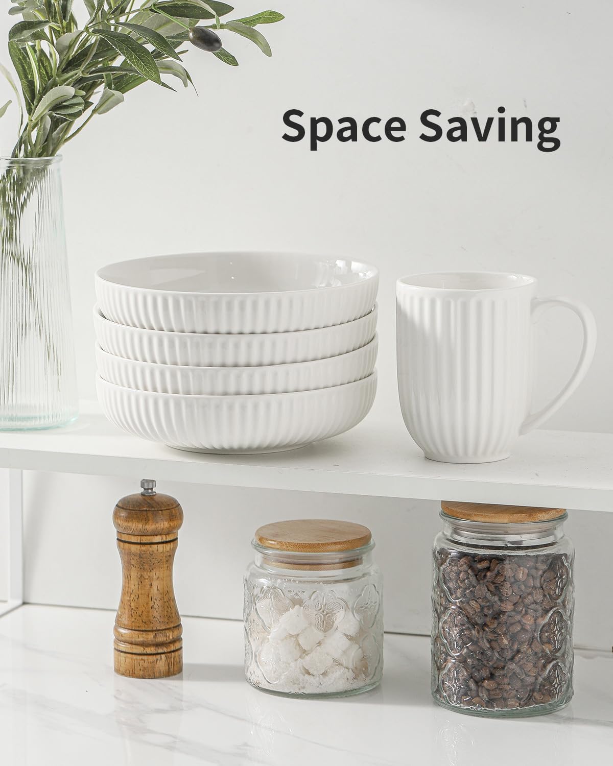 Hasense 8 Inch Pasta Bowls, 30 oz Ceramic Dinner Bowls Set of 4, Bowl Plates for Kitchen, Salad, Large Serving Bowl for Wedding & Housewarming Gift, Modern Bowls Microwave & Dishwasher Safe, White