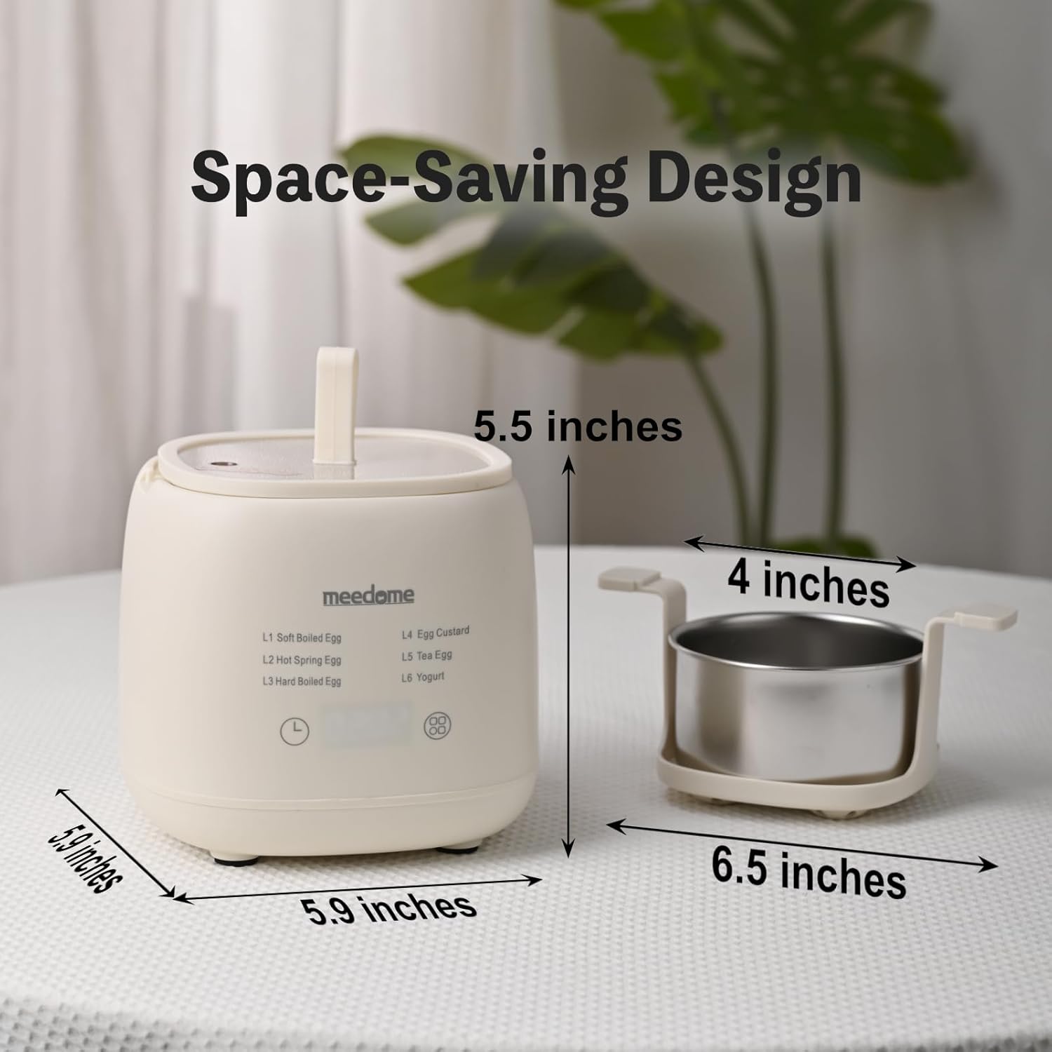 - Space-Saving Design: Compact 6.5" x 5.9" x 5.5" size fits dorm and small kitchens. Includes 4 egg trays and 1 yogurt cup for keto/paleo meal prep