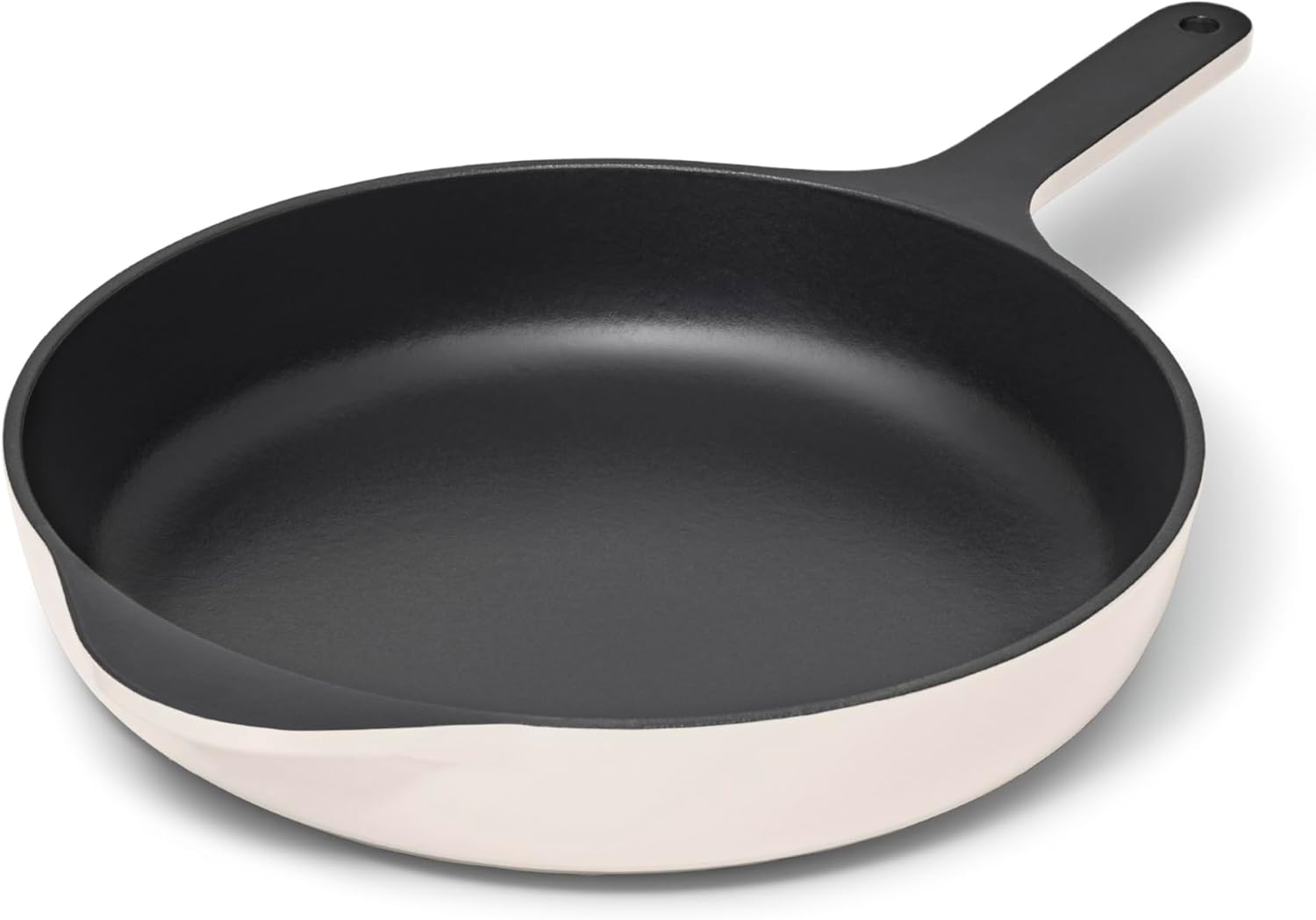 Caraway Cast Iron Skillet - 10.5” Enameled Cast Iron Pan With 3 Layer Enamel Coating - No Seasoning Required - Compatible With All Stovetops - Free From Forever Chemicals - Cream