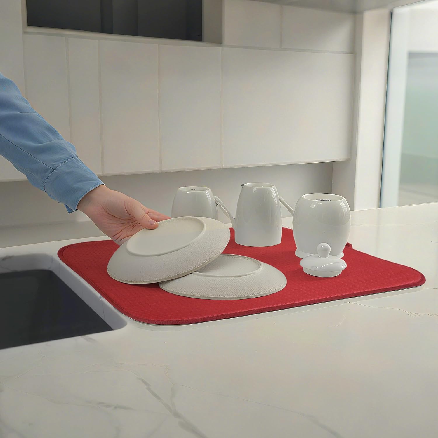 - Convenient Cleaning: Easy to maintain, this dish drying mat is machine washable, allowing for hassle-free cleaning. Simply wash it with mild detergent and air dry
