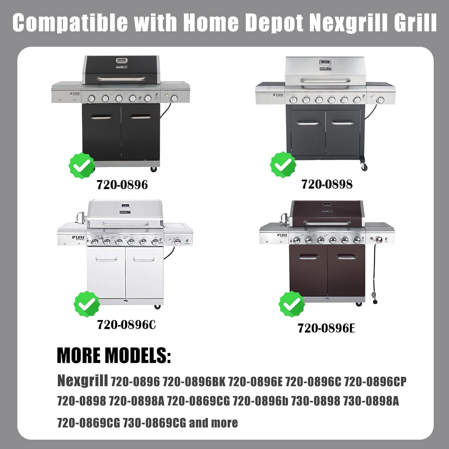 - Compatible with Homedepot Nexgrill 6 Burner Grills Replacement Parts: Our full-size griddle insert is designed to fit Nexgrill 720-0896 720-0896B 720-0896C 720-0896E 720-0896CP 720-0898 720-0898A, Nexgrill 730-0898 730-0898A Grill Parts.