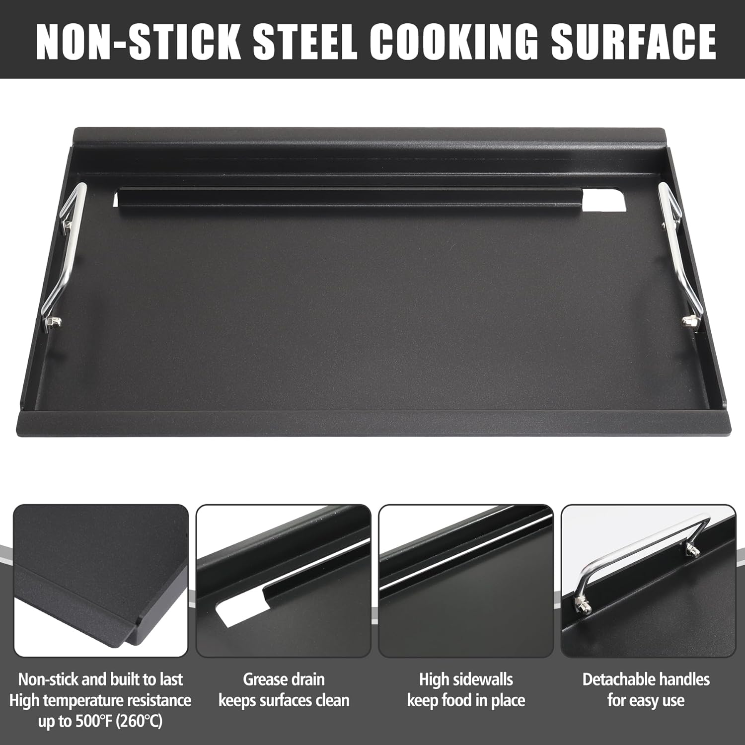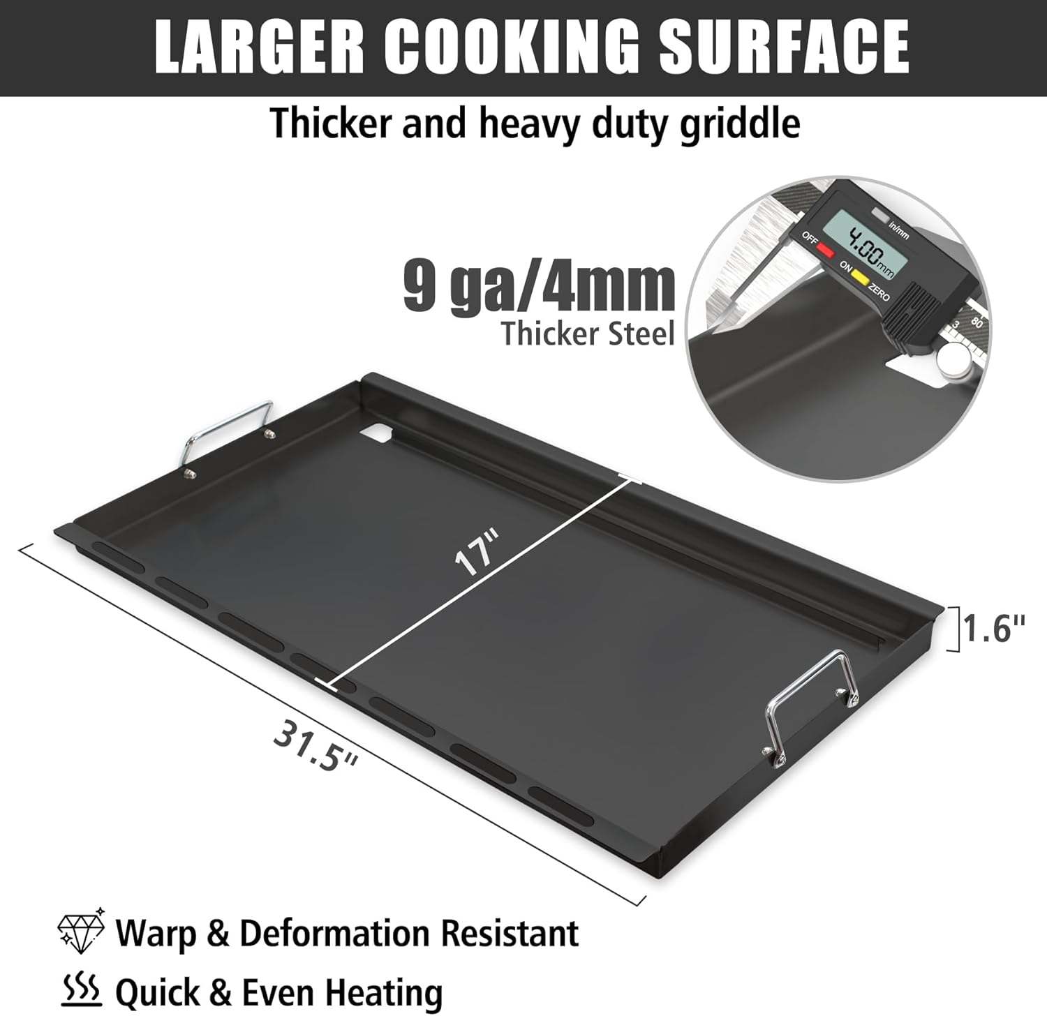 - Premium Quality Construction: Crafted from high-quality carbon steel, our griddle insert is nonstick, durable, and heats up faster than traditional griddles. 4mm thickness ensures even heat distribution for perfectly cooked meals every time.