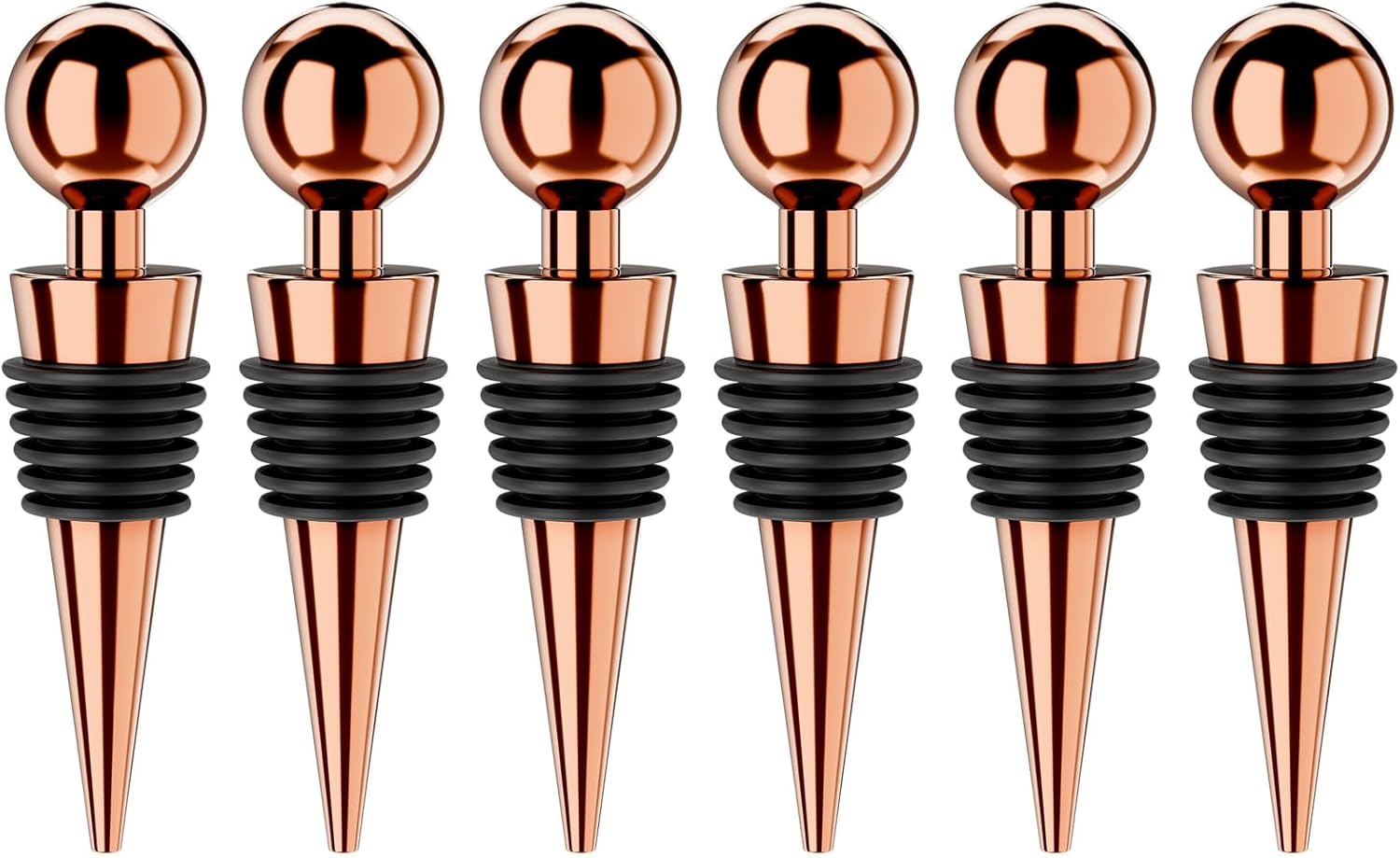 Wine Stoppers for Wine Bottles 6Pcs Vacuum Wine Bottle Stopper with Silicone Reusable Wine Corks, Leak proof Keep Fresh Suitable for Standard (Goldrose, 6 Pack)