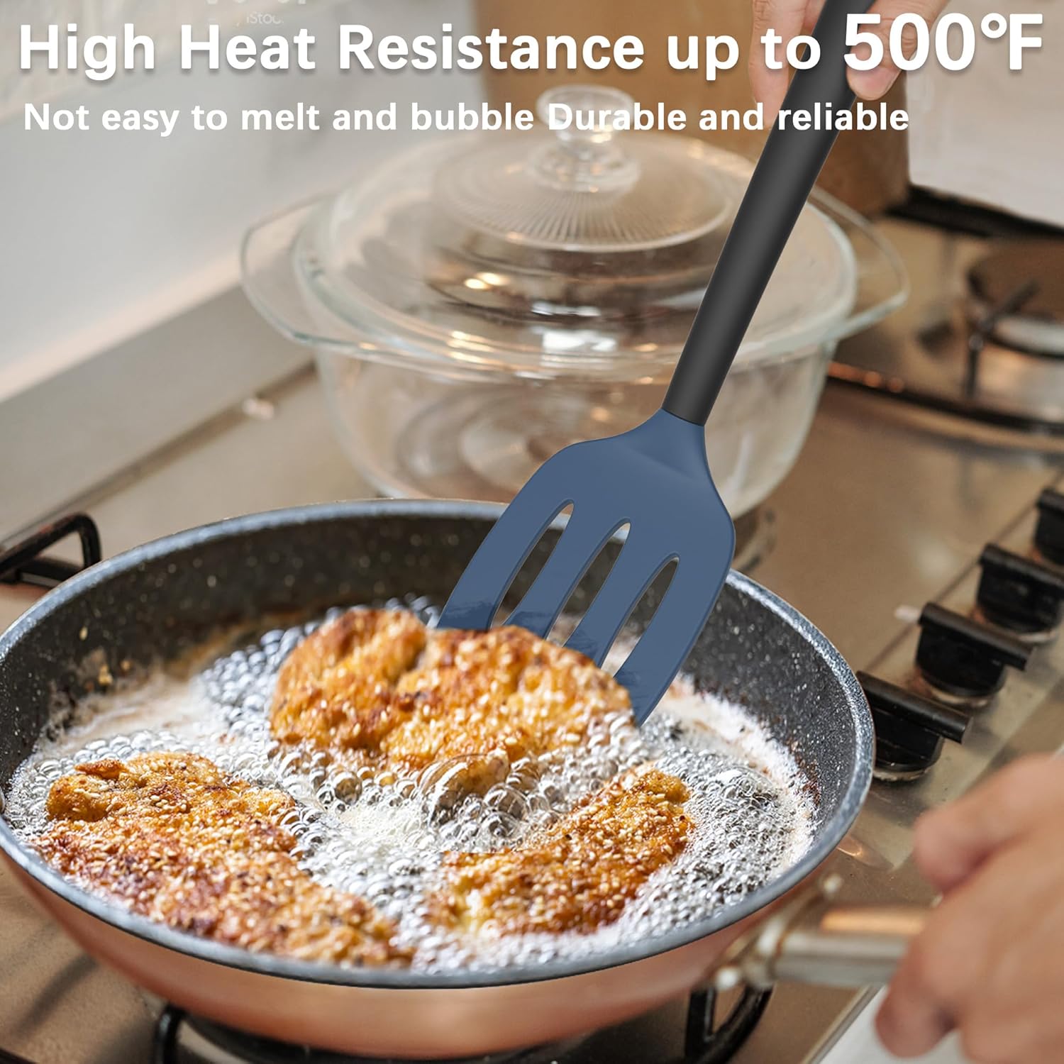 - [Sturdy Yet Flexible]: The kitchen spatula turner set features a reinforced nylon core, a silicone handle that makes the grip more comfortable, and the flexible head provides precise control, making flipping and stirring easier