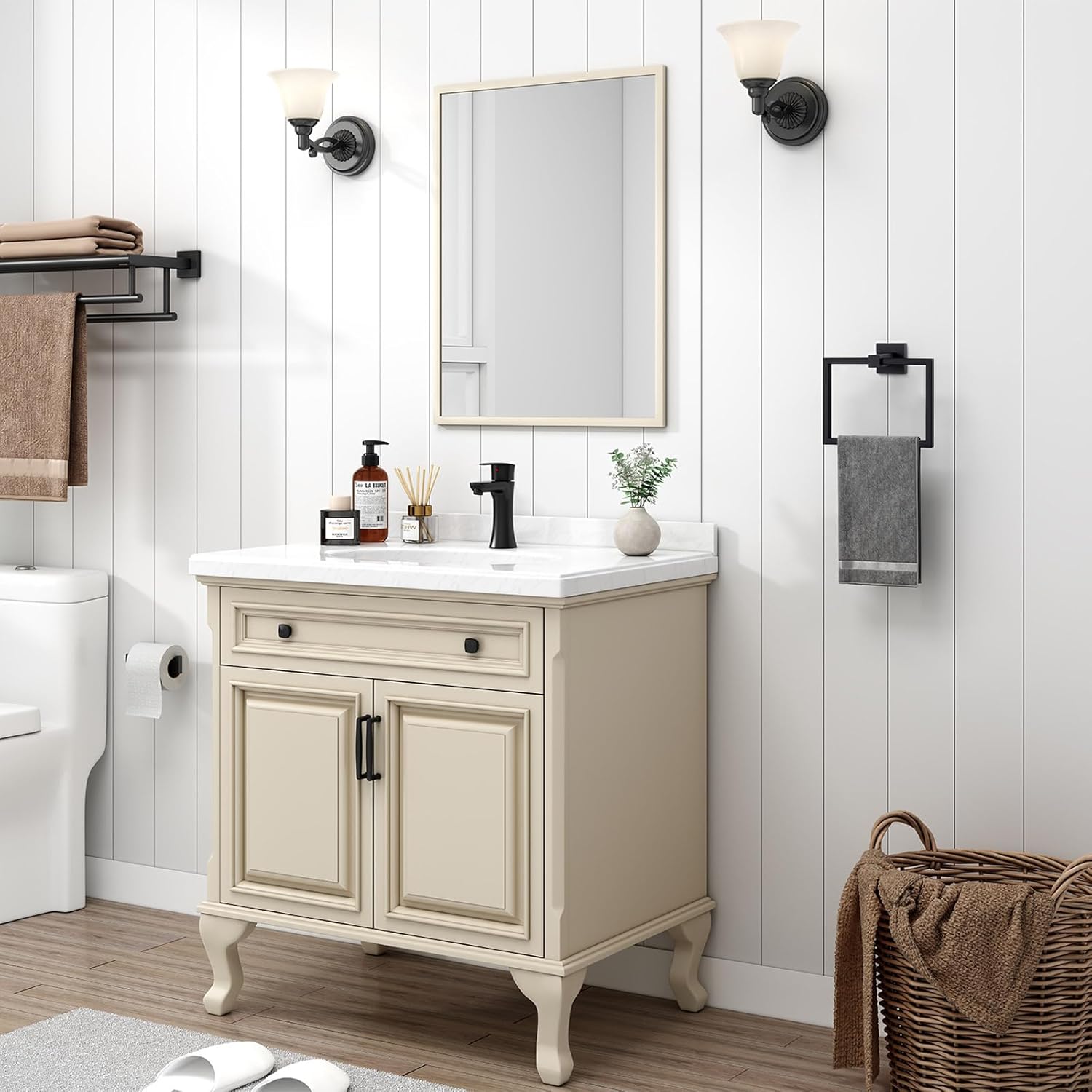 Suyar Matte Black Towel Ring, SUS 304 Stainless Steel Hand Towel Holder for Bathroom Restroom, Wall Mounted