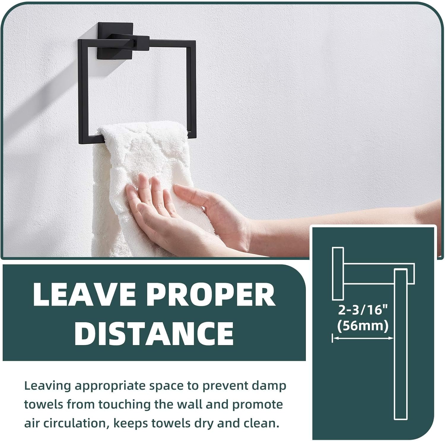 - CLEAN AND DRY TOWELS: distance between wall and ring is 2-3/16"(56mm), not extend out far, leave enough space for towels drying, square ring for better towels spreading