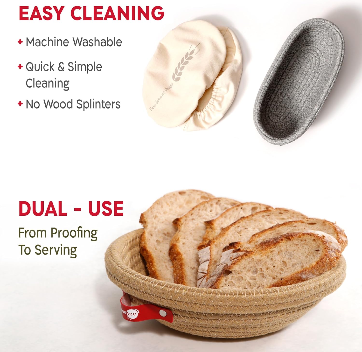 - Breathable Cotton Rope proofing bread Baskets: Maintain ideal dough hydration with round & oval proofing baskets designed for artisan sourdough bread. Sourdough basket, liners & Covers are all machine washable
