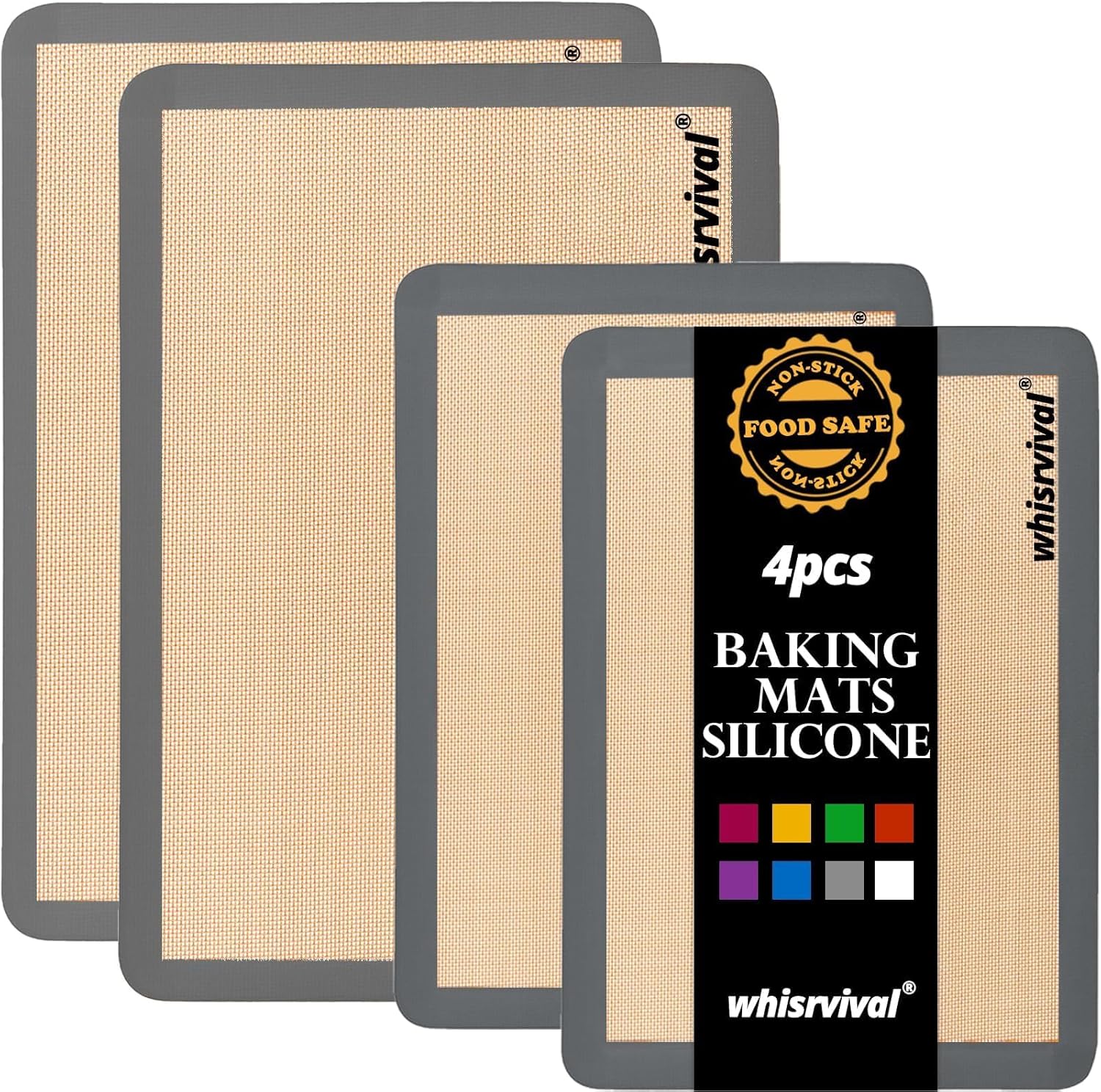 - 2 Half (16.53 x 11.61 inches) & 2 Quarter sheet (11.81'' x 8.26'')Silicone Baking Mats, perfect for keeping different recipes separate—no more mixing flavors