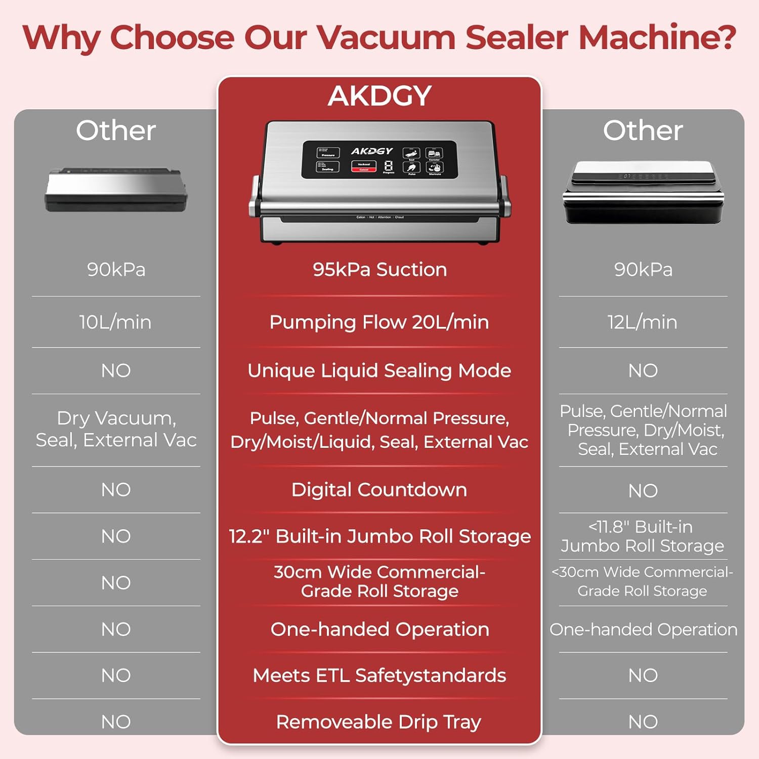 - ETL-Certified & Premium Build Quality: This vacuum sealers for food storage has been rigorously tested and is ETL certified to ensure it meets stringent safety standards. This food vacuum sealing machine has a sleek design that is perfect for the countertop, and it's made of stainless steel, which is sturdy and well-made, and a removable drip tray to catch spilled liquids, making it easy to clean and maintain