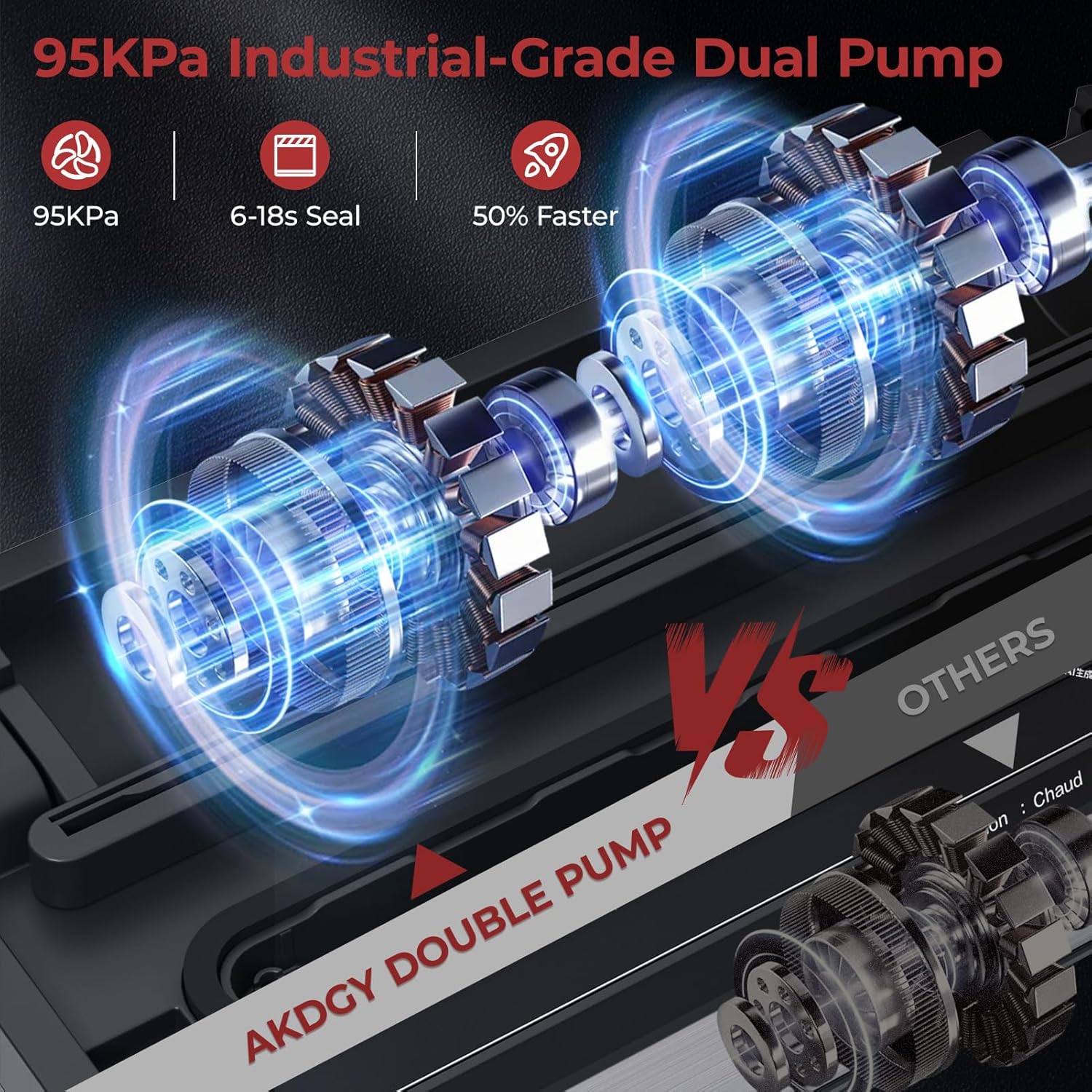 - Commercial-Grade Performance: 95Kpa Liquid Vacuum Sealer Machine features professional suction strength, 20 L/min vacuum speed and 6-18s sealing time for optimal performance. 200+ continuous seals without overheating. Dual vacuum pumps to ensure maximum air extraction when sealing larger foods