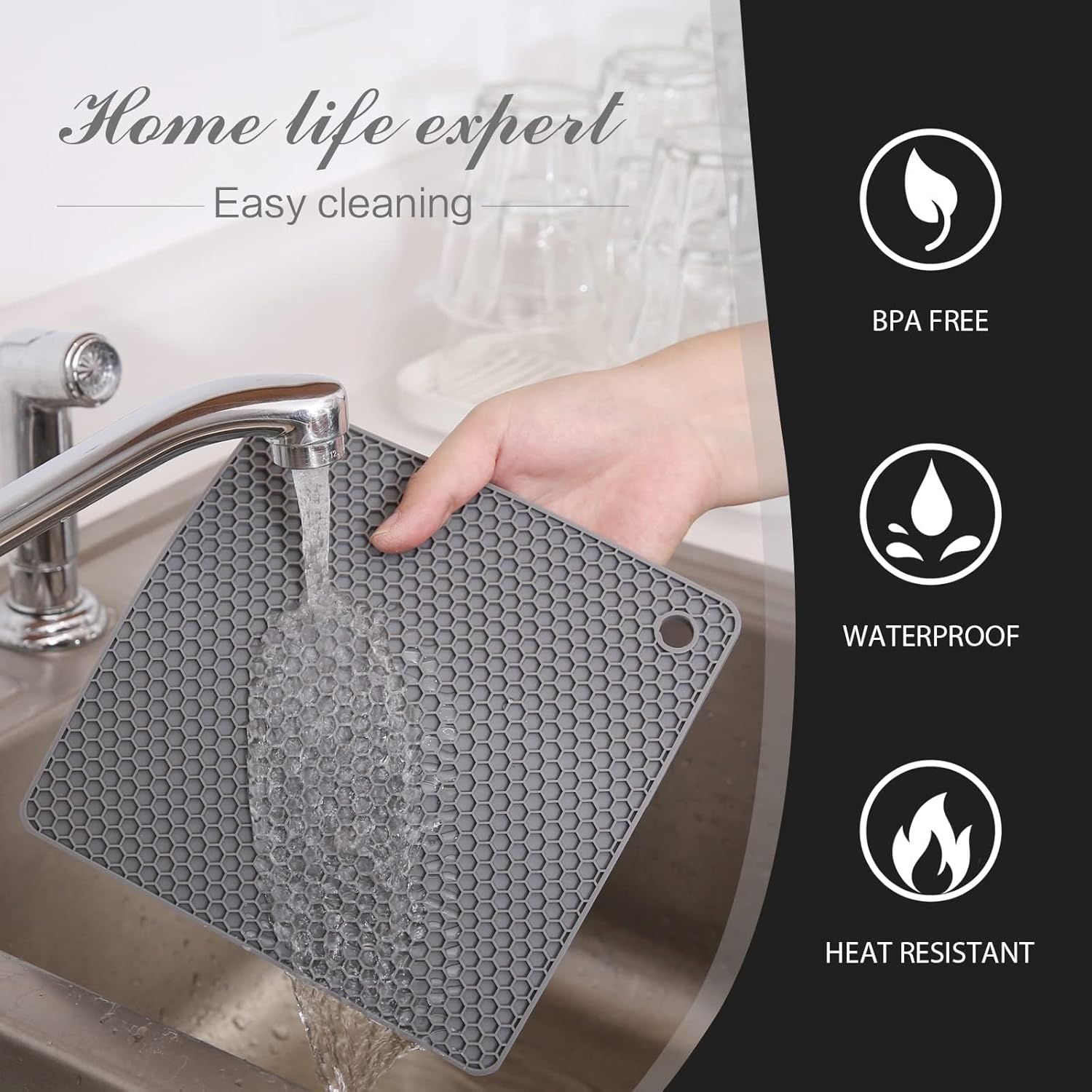 - FLEXIBLE & DURABLE TRIVETS - Our silicone trivet mats for kitchen counter are thicker than traditional sets to provide long-lasting durability and better protection for your countertops while maintaining their flexibility. The honeycomb pattern makes them more heat-resistant.
