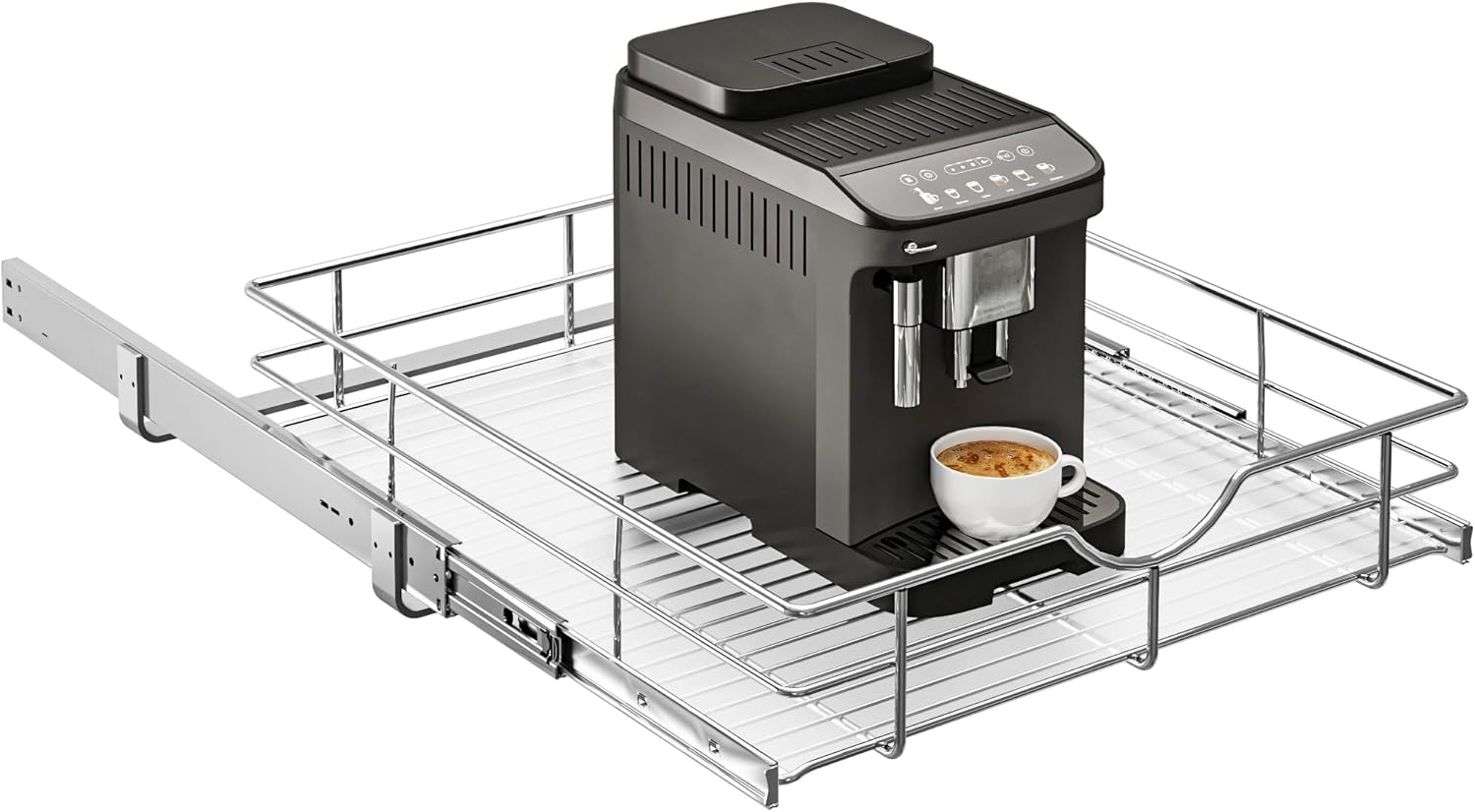 - 【Premium Material】This pull out cabinet shelf is made of high quality steel, heavy-duty and durable, load-bearing. The pull-out cabinet organizer offers a sturdy, noiseless, and smooth glide for easy access to kitchen essentials