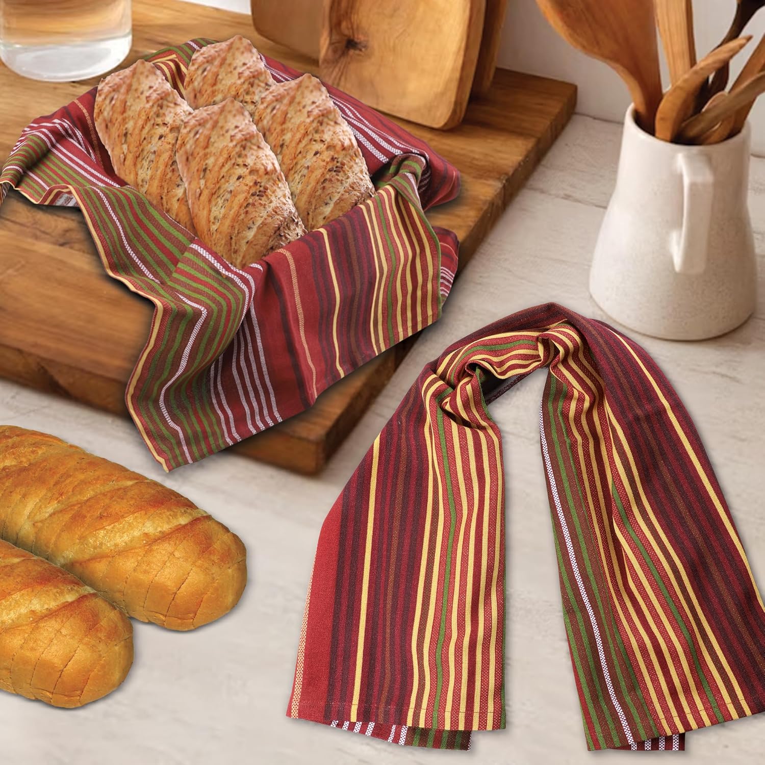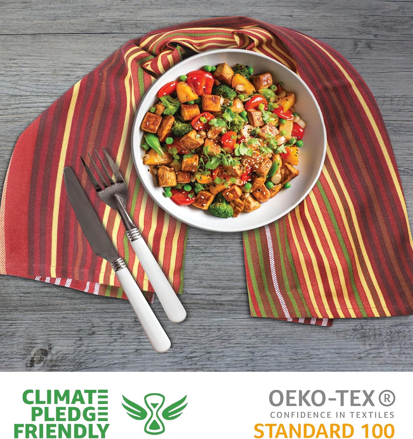 Urban Villa Fall Print Stripes Kitchen Towels Premium Quality 100% Cotton Harvest Dish Towels Mitered Corners Ultra Soft (Size: 20X30 Inch) Thanks Giving Highly Absorbent Tea Towels - (Set of 6)