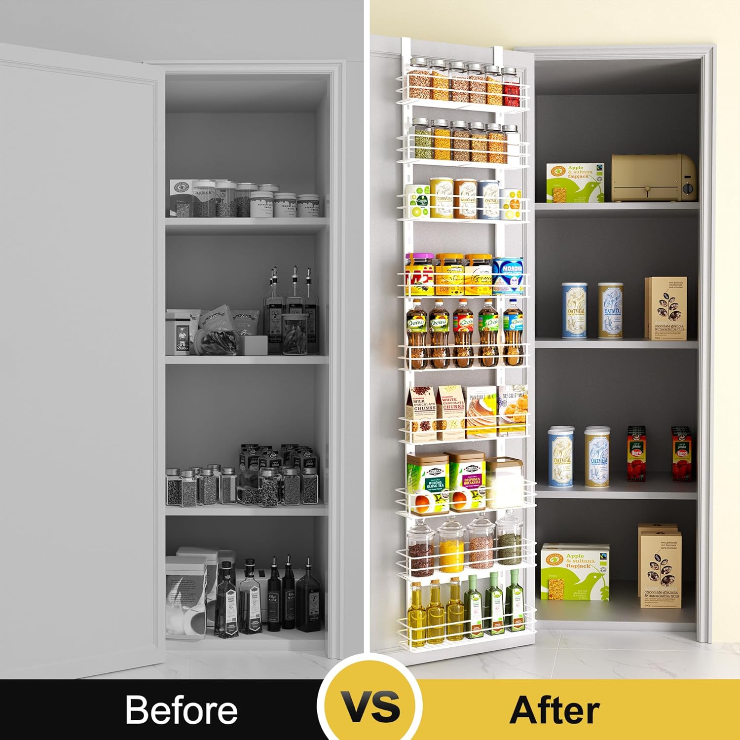 Pantry Door Organizer 12 Inch Wide, 9 Tier Hanging Adjustable Over the Door Spice Rack For Narrow Space,Matt White