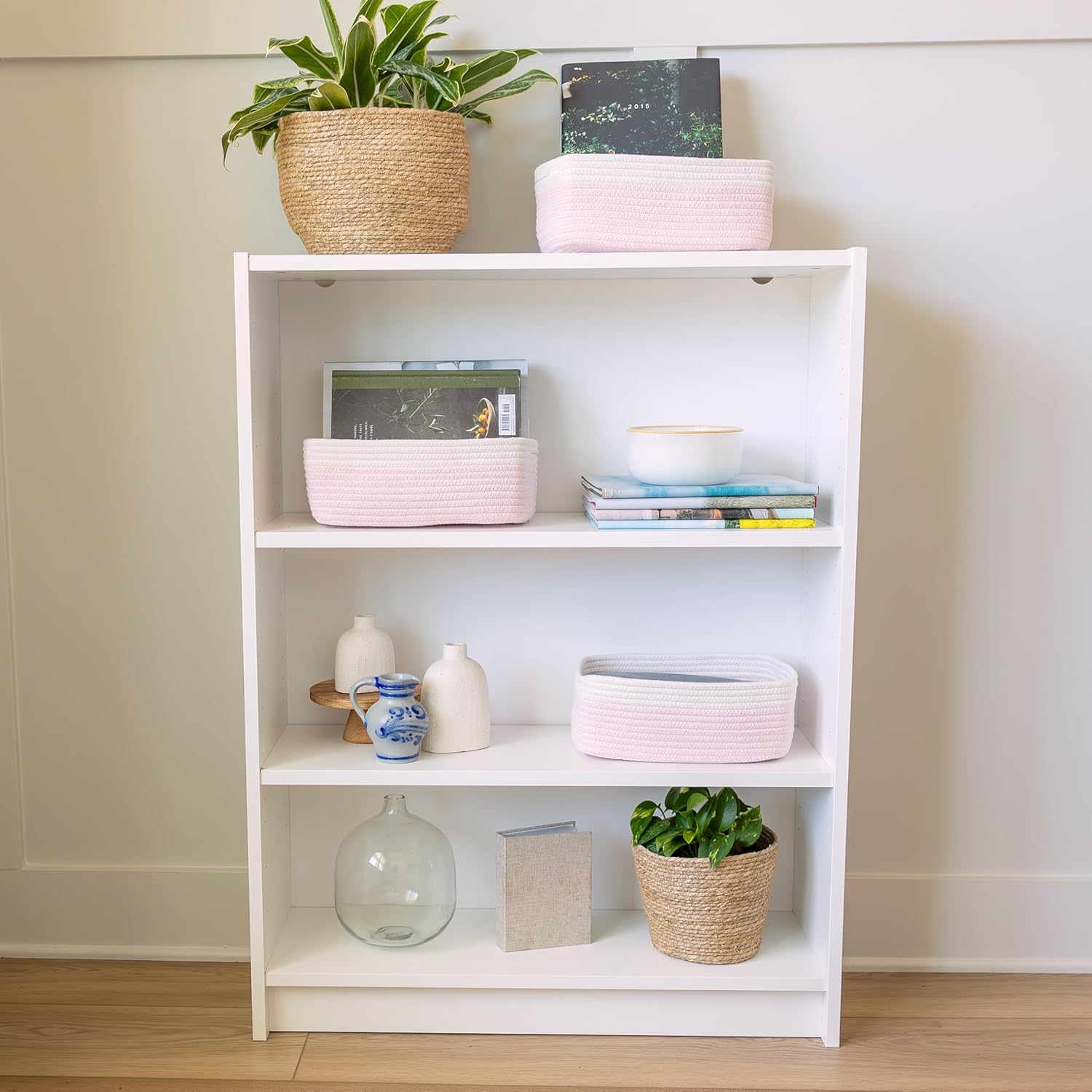 - Safe, Natural Cotton Organizer Bins: Crafted from the highest quality material in the market, our storage bins are oh-so-sturdy (and cute) and ready to take on little humans. They’re 100% safe, so you can rest easy if teething toddlers take a nibble. Reinforced Hidden Handles: Now you see ‘em, now you don’t! With completely hidden handles that blend seamlessly into the rope basket, you’ll be the Houdini of home organizing. They’re even double-stitched and reinforced for extra heavy loads!