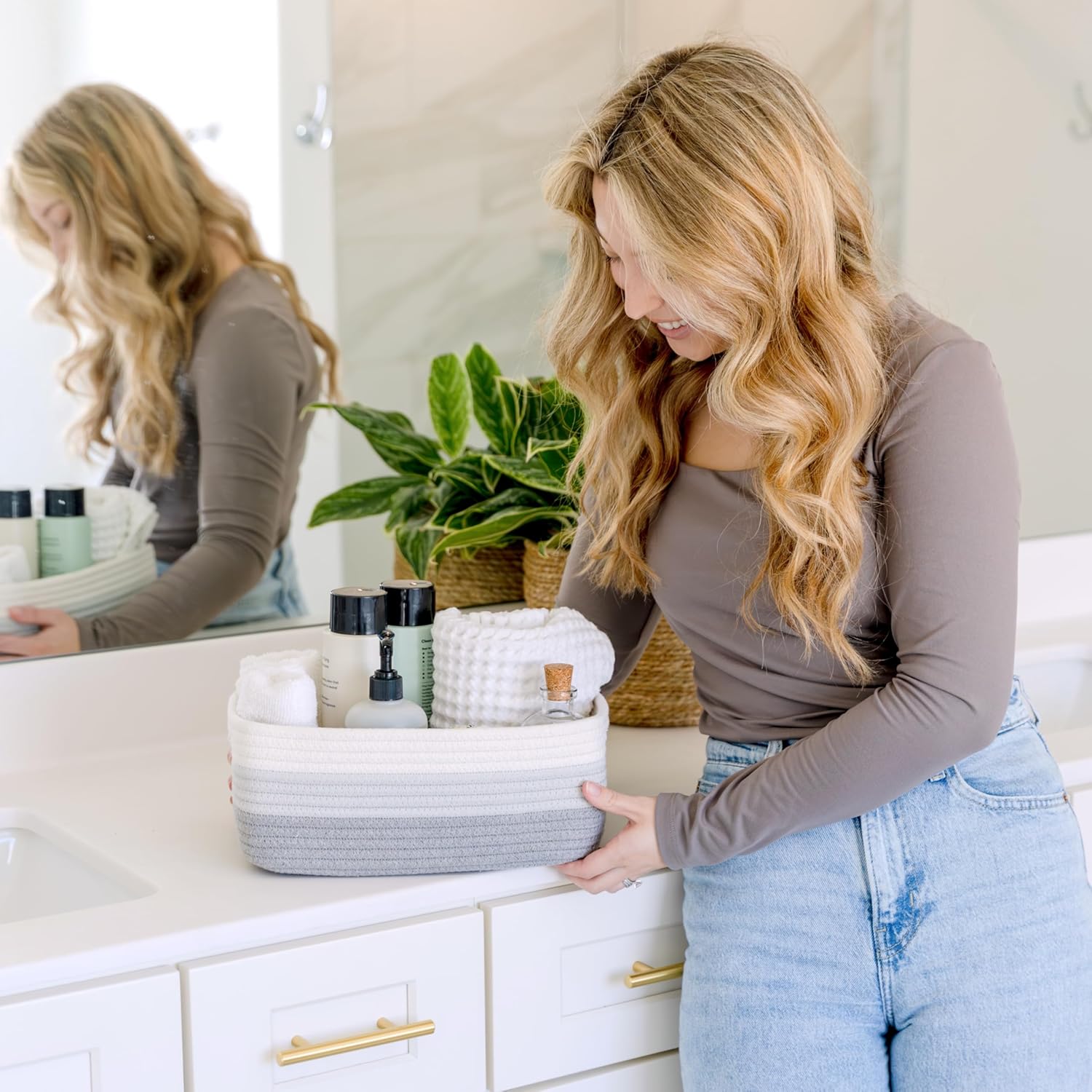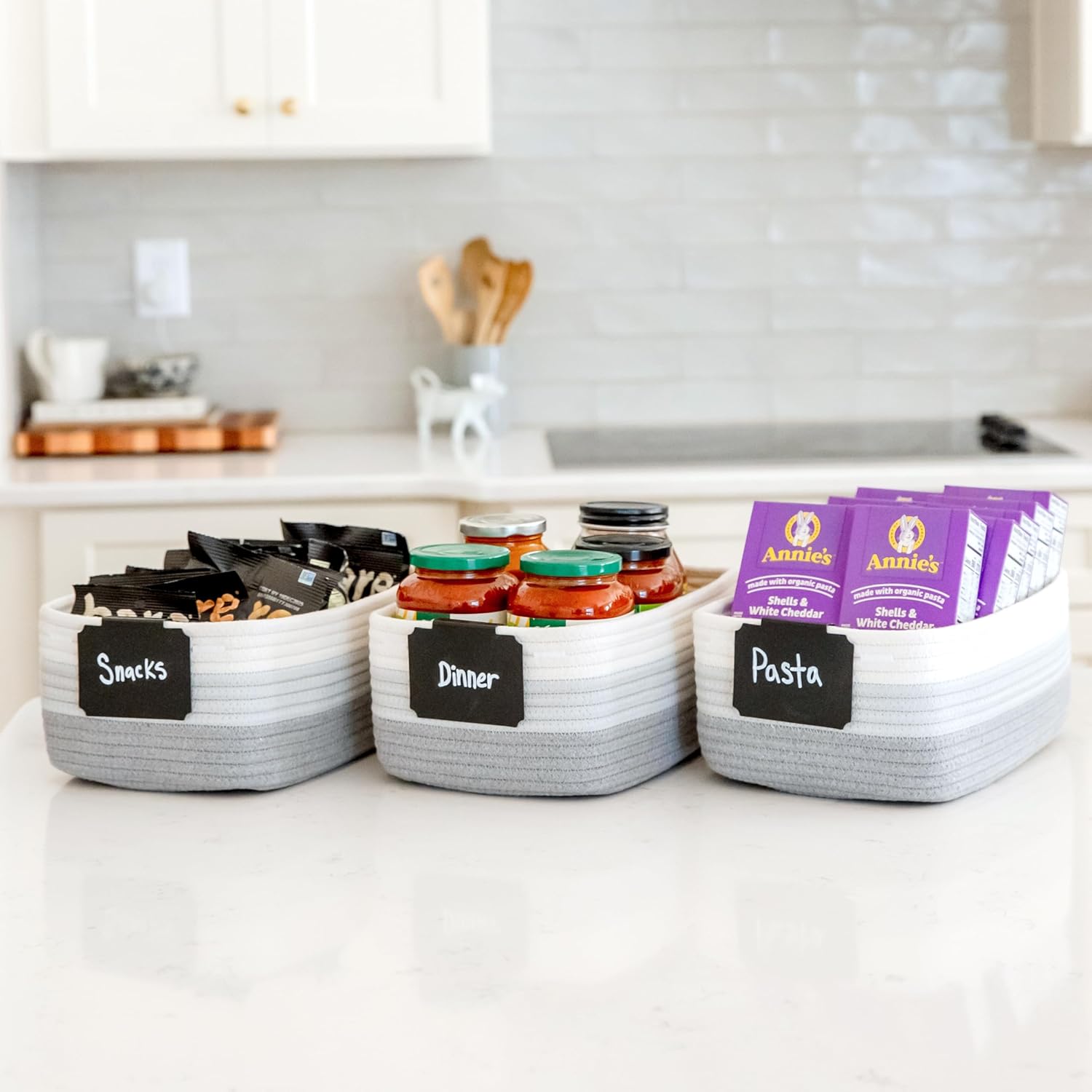 - Safe, Natural Cotton Organizer Bins: Crafted from the highest quality material in the market, our storage bins are oh-so-sturdy (and cute) and ready to take on little humans. They’re 100% safe, so you can rest easy if teething toddlers take a nibble. Reinforced Hidden Handles: Now you see ‘em, now you don’t! With completely hidden handles that blend seamlessly into the rope basket, you’ll be the Houdini of home organizing. They’re even double-stitched and reinforced for extra heavy loads!