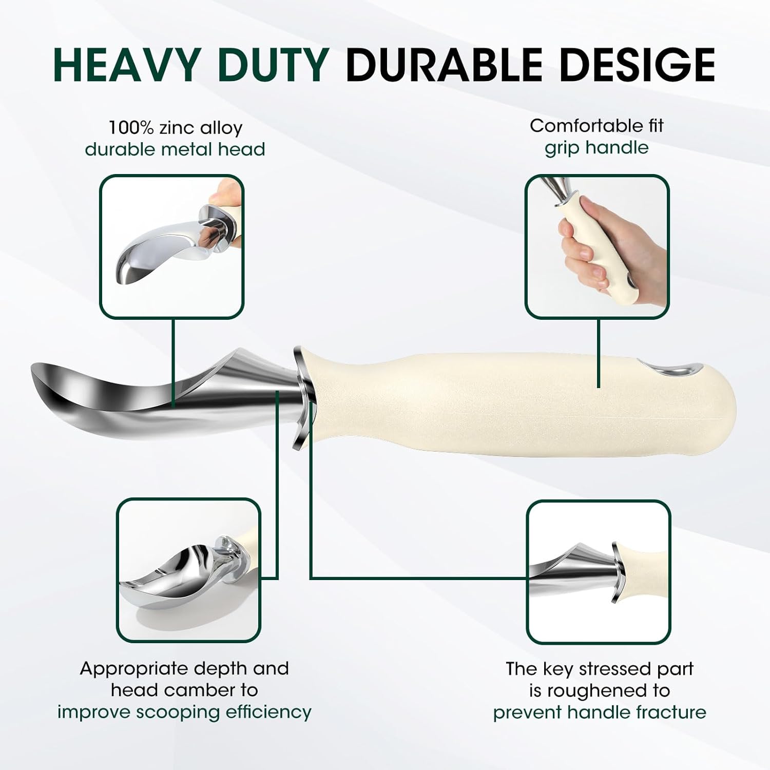 Beneno Heavy Duty Ice Cream Scoop - Upgraded Anti-Fracture Design, Comfortable Grip Long Handle, Effortless Scooping & Dishwasher Safe, Cream